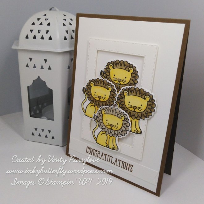 The lions were stamped in Memento ink and coloured with Stampin’ Blends.