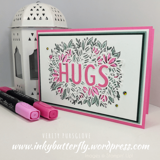 The card base was cut from Polished Pink cardstock and us the feature colour in the colouring and die cutting!