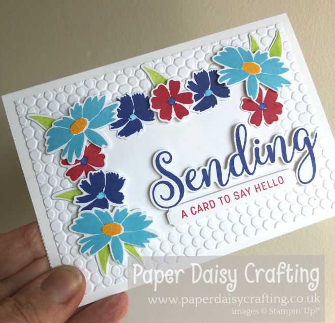 Jill’s card is showcasing the new In Colours with a gorgeous new stamp set and die bundle framed with embossed details!