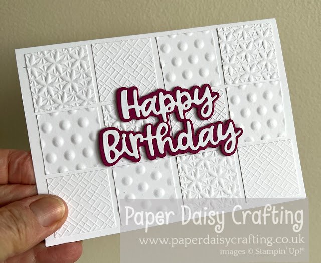 Jill has used some embossed squares to add texture to a geometric themed card ….