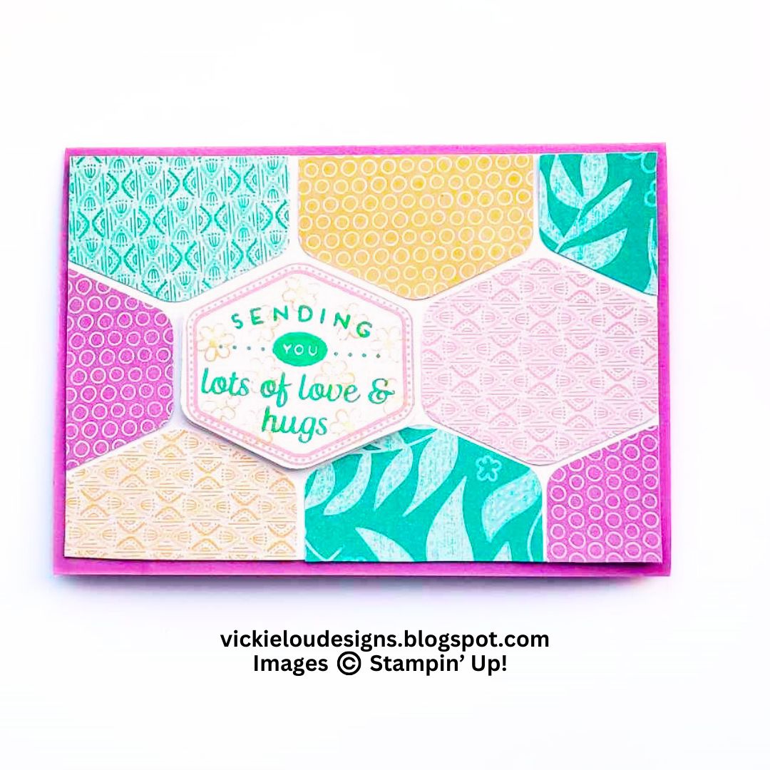 Vickie is using the Heartfelt Hexagon punch to make a fun background with the 2024 In Colour Designer Series Paper…