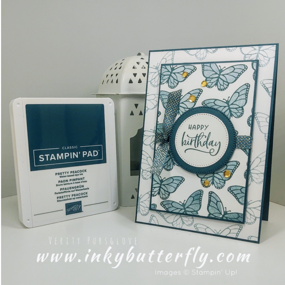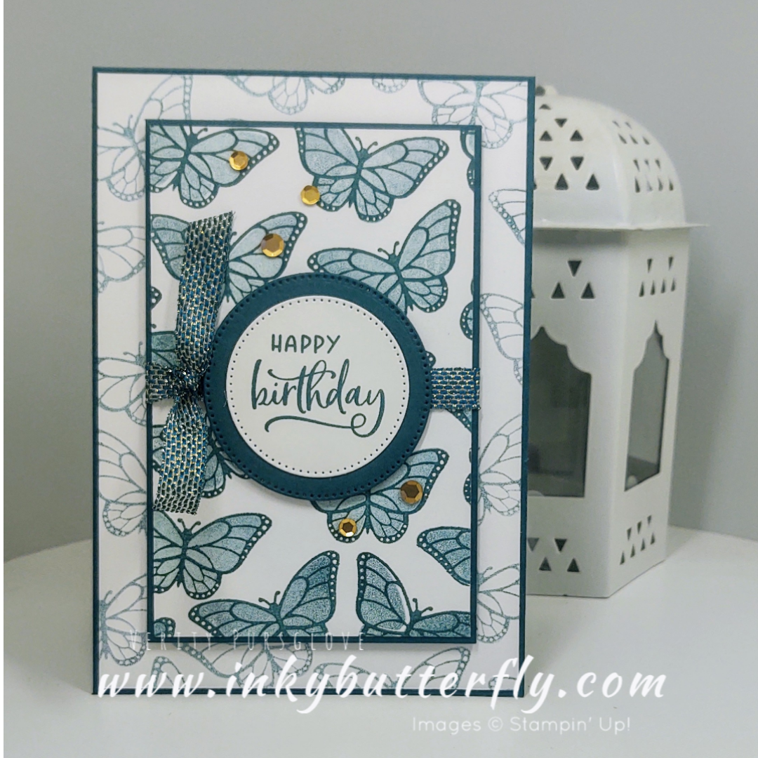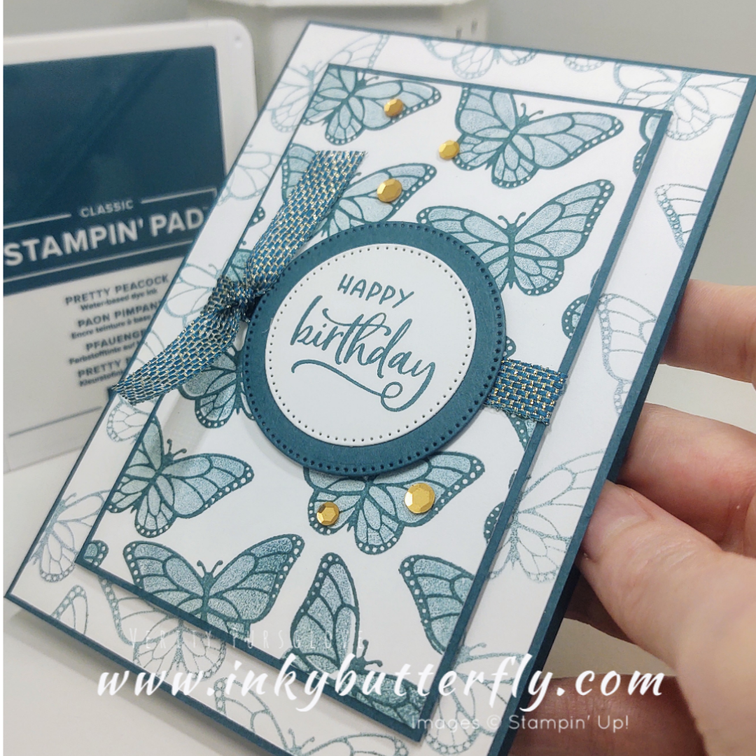 For the background panel I used second generation ink, (stamped off) to add butterflies around the edge.