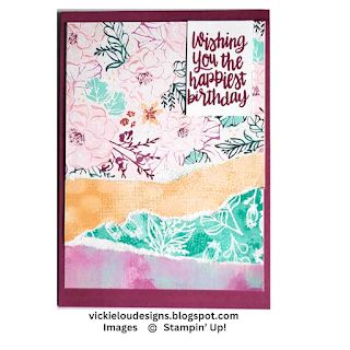 Vickie’s card is full of colour and texture from the torn DSP technique …