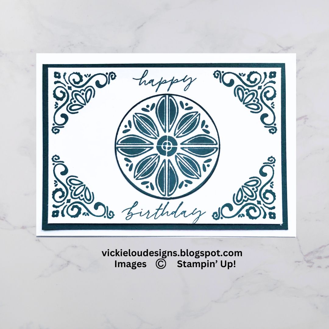Vickie’s monochromatic design features one of my favourite stamp sets. I love the symmetry of this layout…