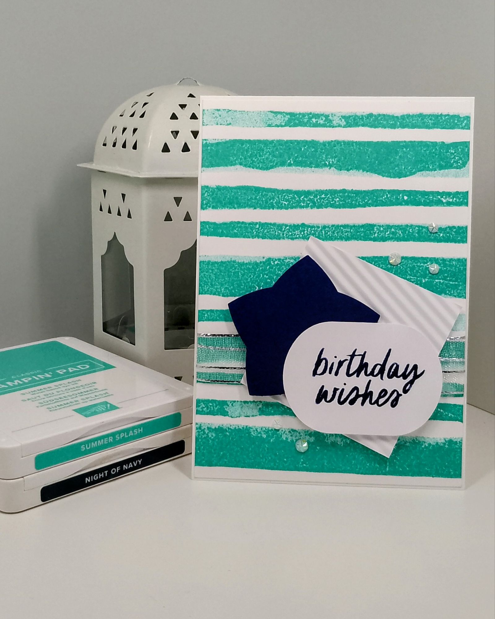 A background stamp gives a great quick and easy solution, I used Painted Stripes with Summer Splash ink on my card.