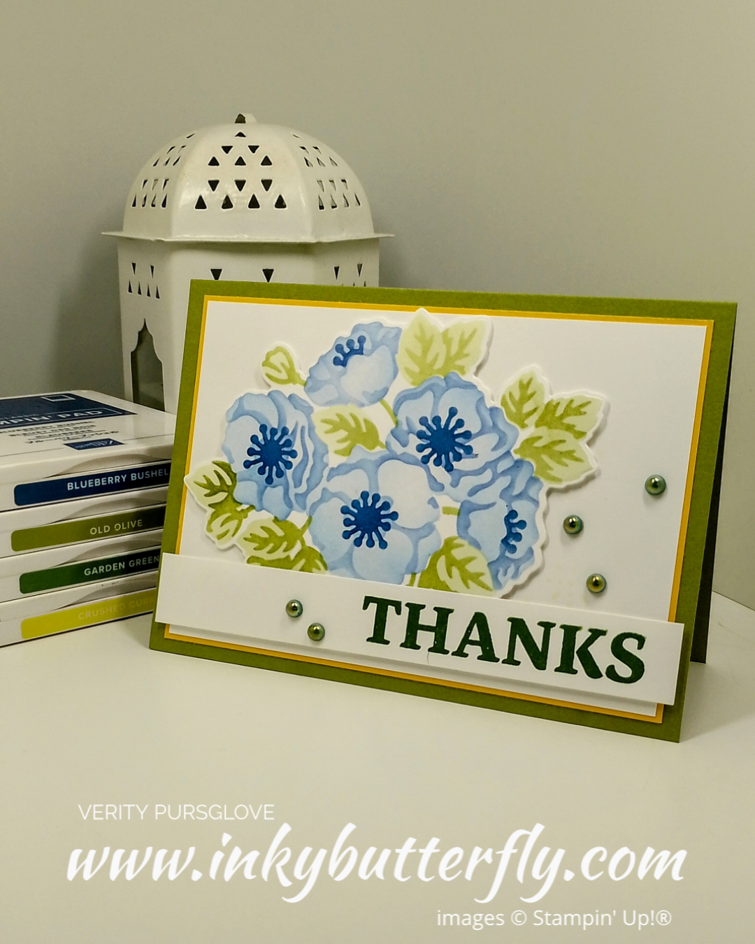 Garden Green ink was used to stamp the sentiment, and in the pearls!