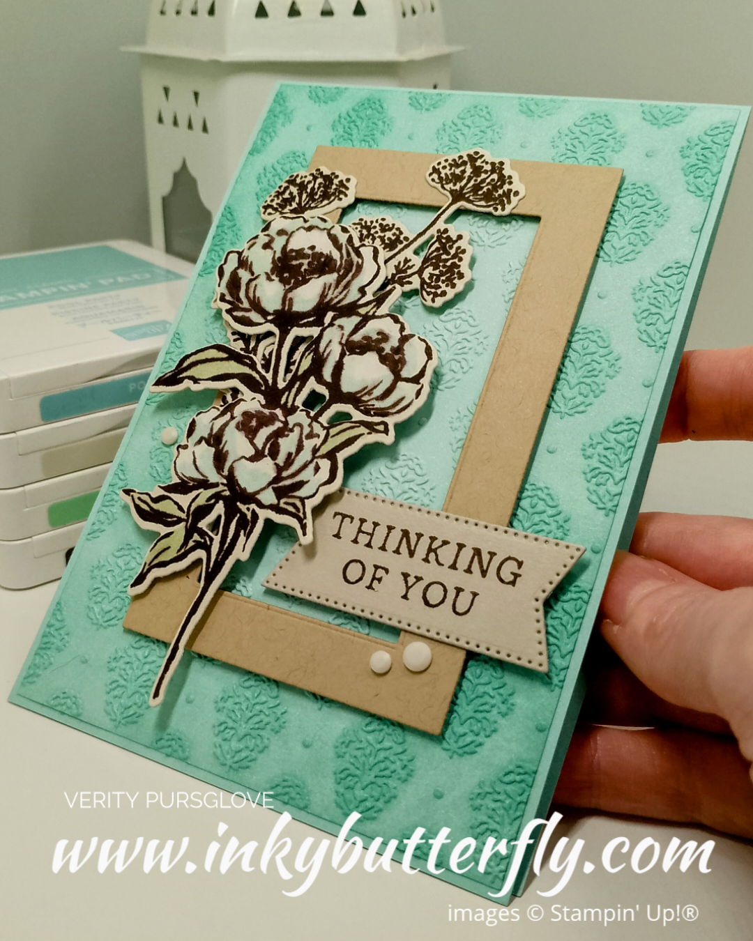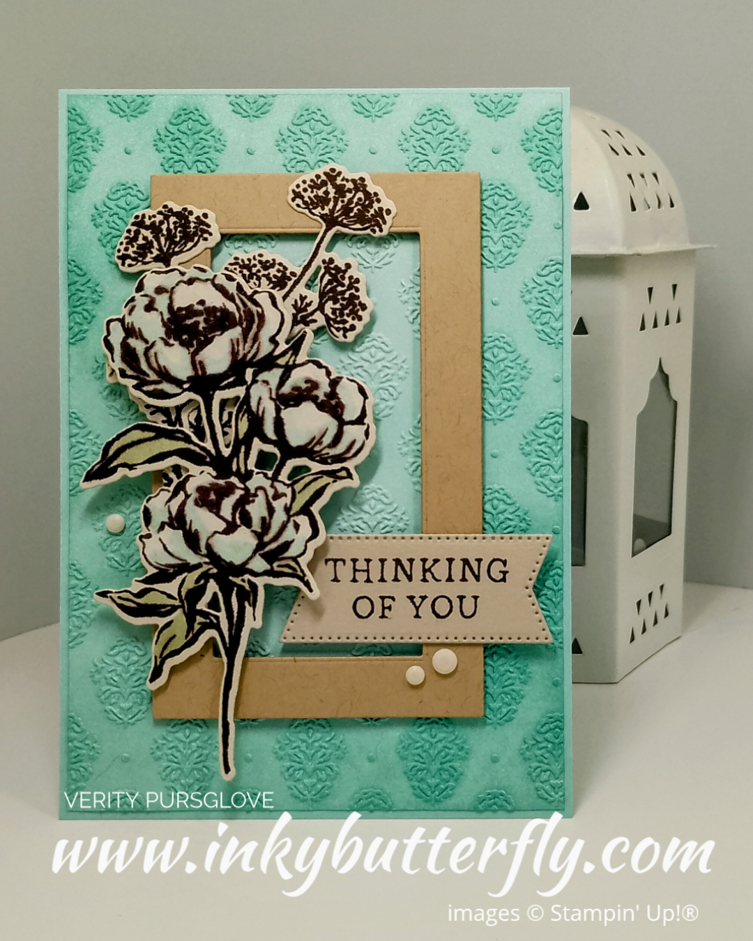 Pool Party two tone cardstock was embossed with the Damask embossing folder and enhanced with some coordinating ink.