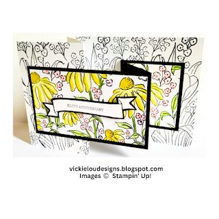 Vickie has created this wonderful fun fold card, I love the mix of black & white with the bright colours ….