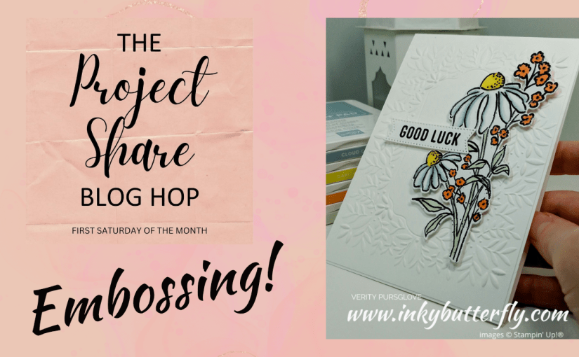 Florals were coloured with Stampin’ Blends. The outline was then restamped in versamark … You will need a positioning tool to do this … And then heat embossed with black powder.