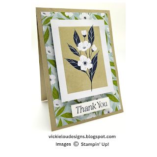 Vickie is using the Lovely Blossoms designer series paper as the focal point of her card ….