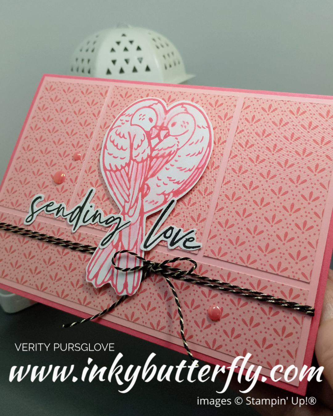 Birds were stamped in Strawberry Slush ink and “coloured” with Wink of Stella.