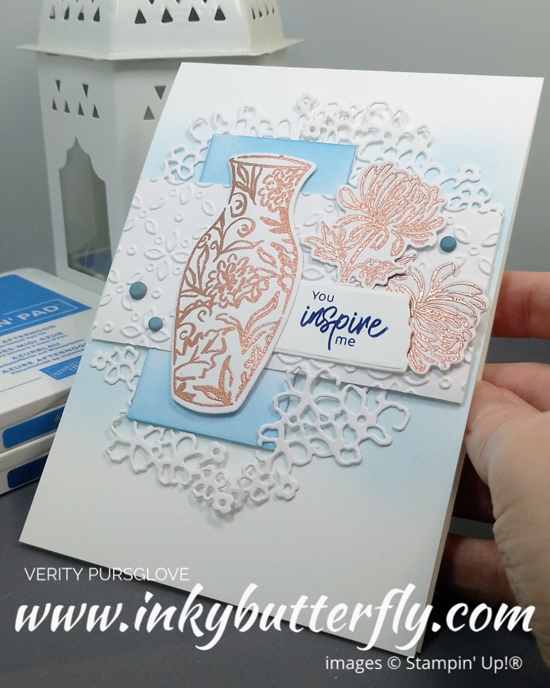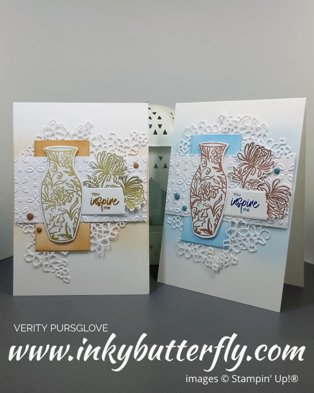 The vase and florals were heat embossed with metallic powders.