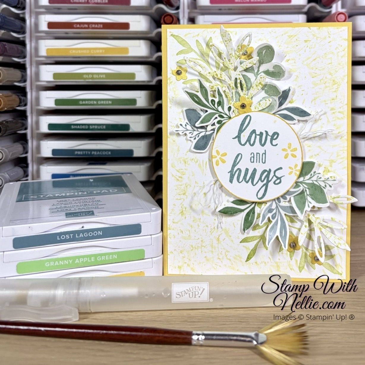 Heather is using the Greenery Lane bundle to make her colourful, textured card ….
