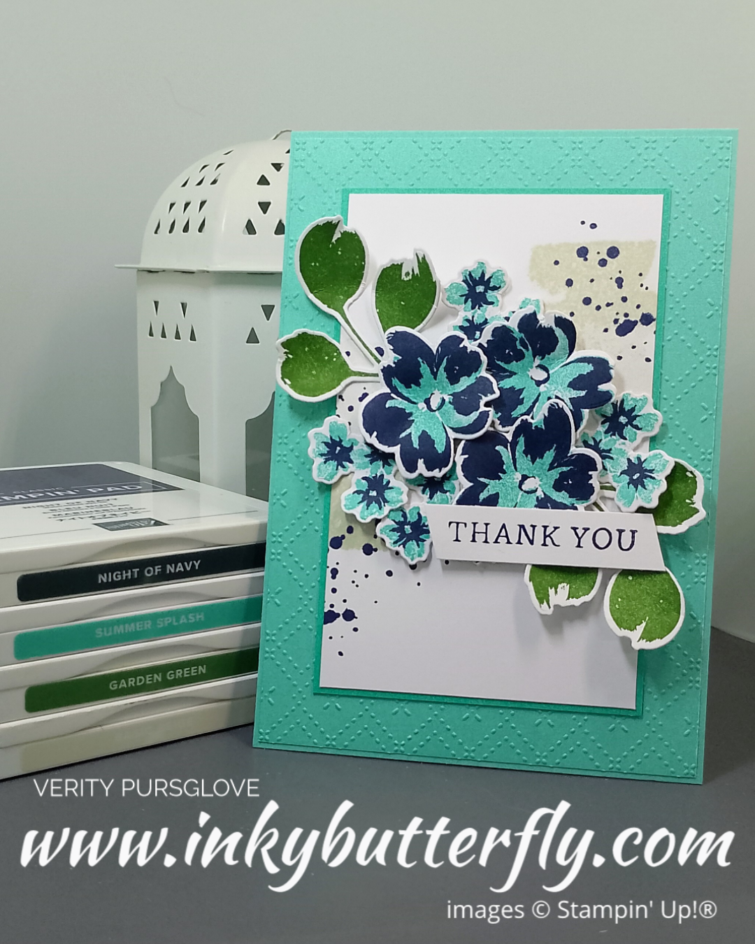 The florals were stamped with Summer Splash, Night of Navy and Garden Green.