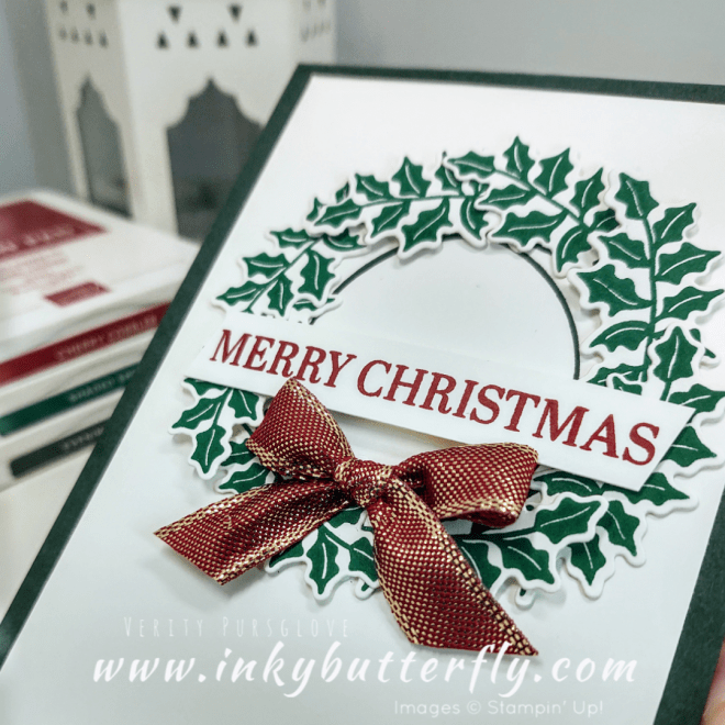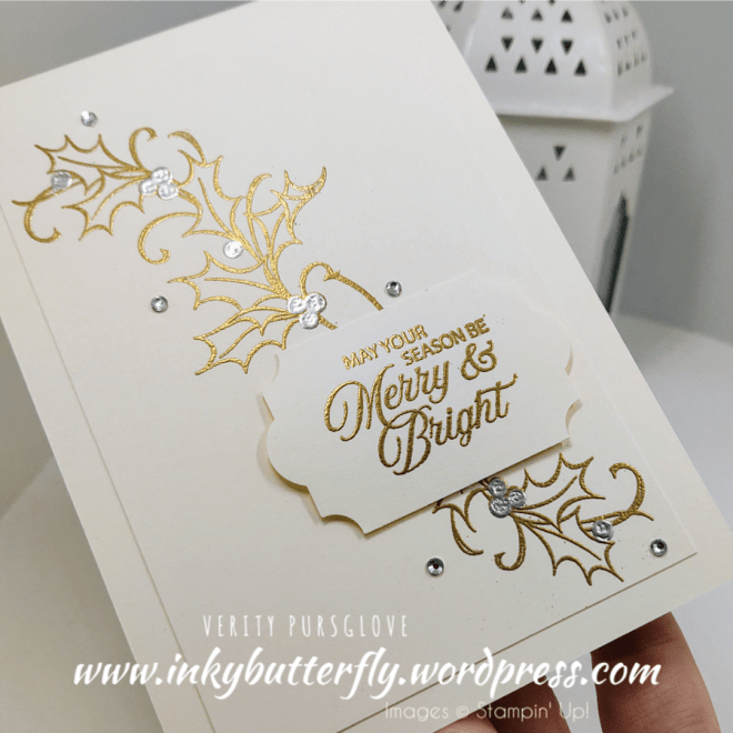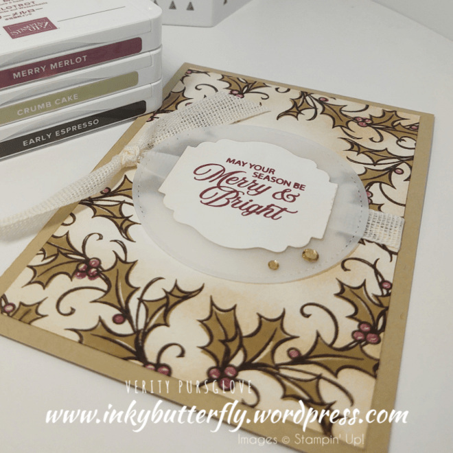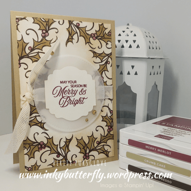 The Cherry Cobbler & Gold Metallic Ribbon is absolutely gorgeous in real life. It finishes off the card brilliantly.