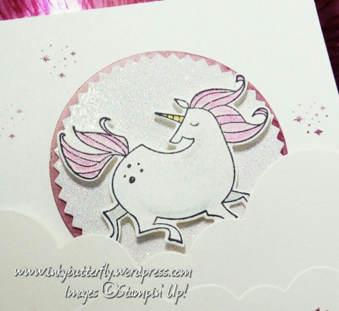 I have used Stampin’ Blends to colour it in. The markers blend beautifully. The flowers use Pink Pirouette and Rich Razzleberry, which give the petals dimension.