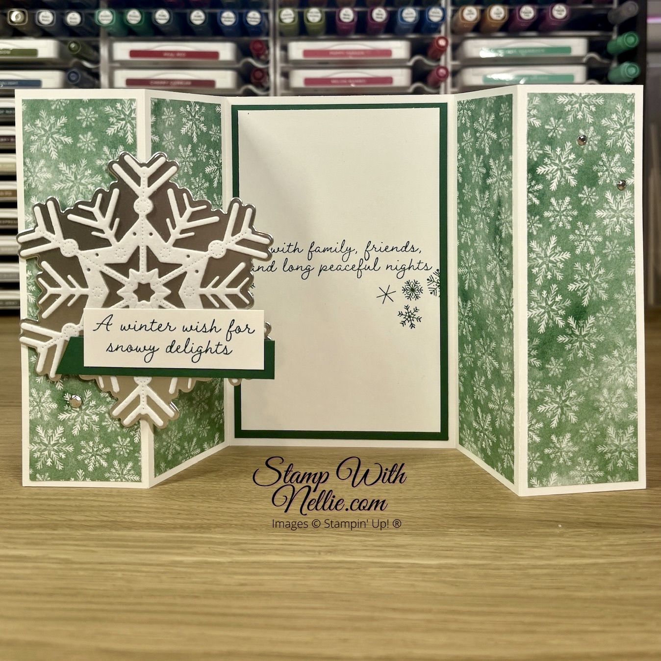 A detailed snowflake die cut in White Willow was added over the top with a simple sentiment from the Gift of Joy set.