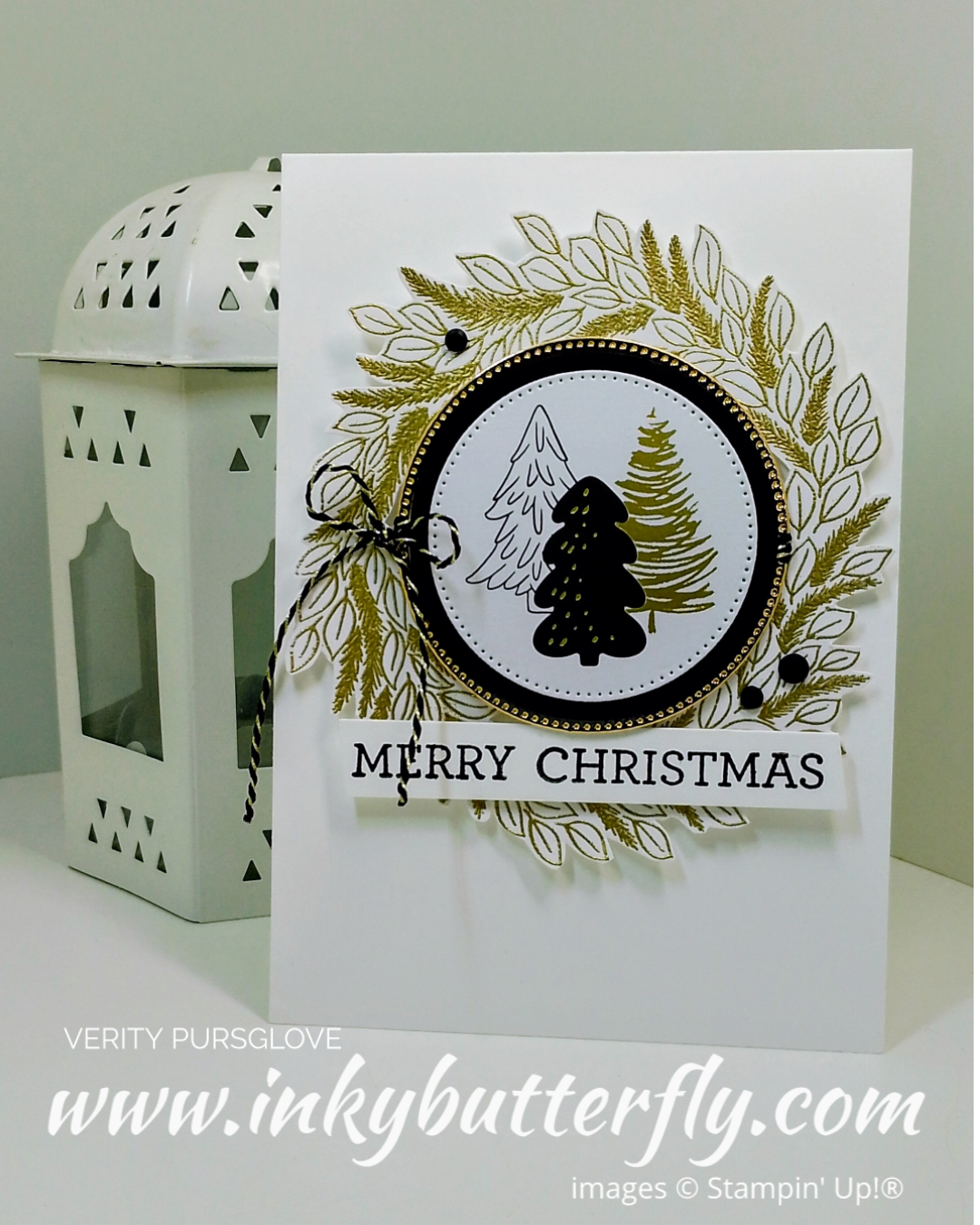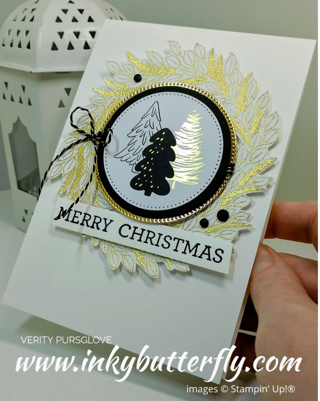 The wreath was heat embossed in gold and added the the card base with dimensionals.