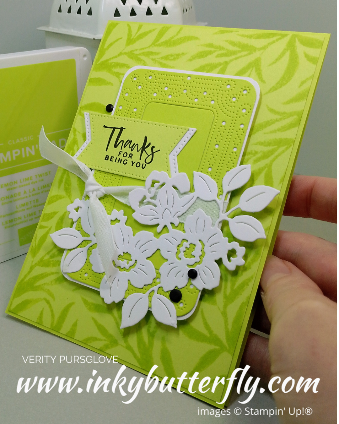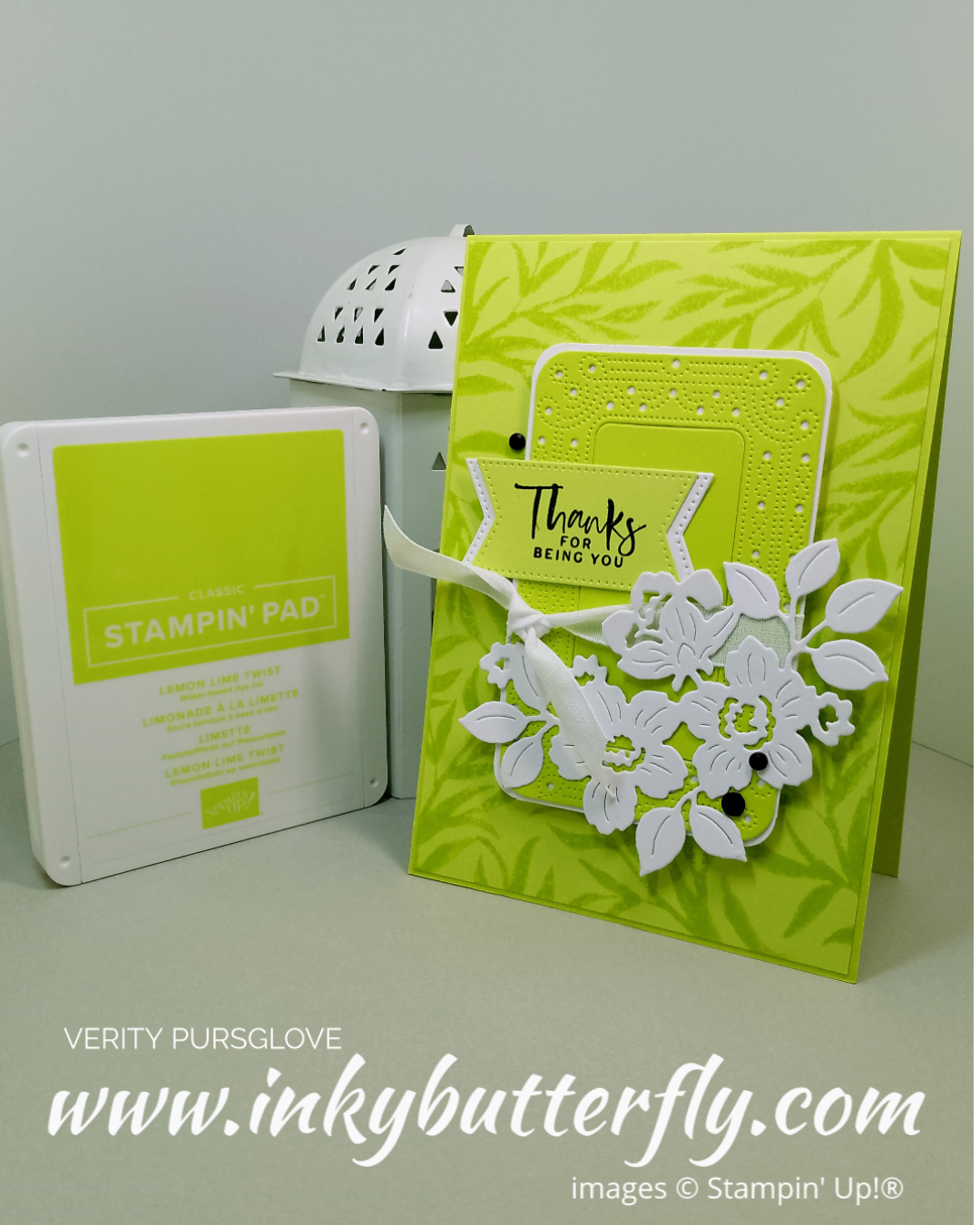 The original card used Summer Splash, Lemon Lime Twist and a little Petunia Pop in the background.