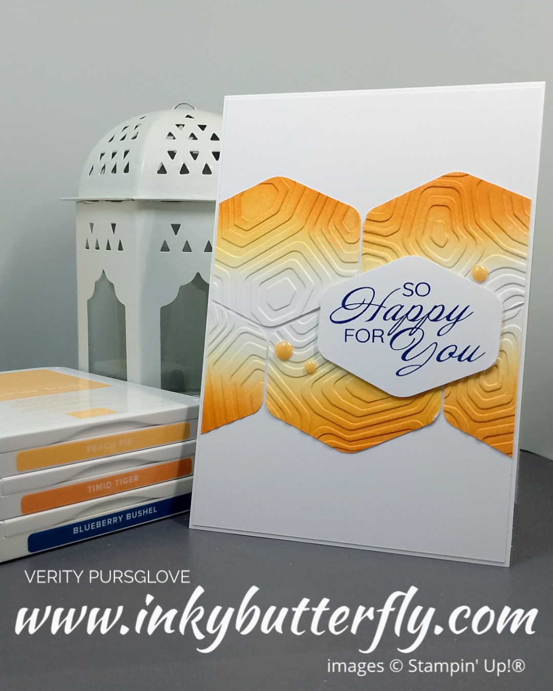 For this version I used Peach Pie and Timid Tiger with the Turtle Textures embossing folder. The sentiment was stamped with Blueberry Bushel ink.