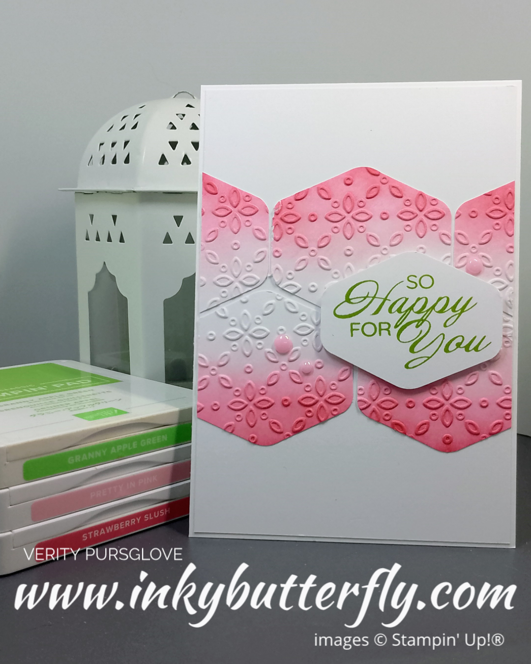 Before adding Strawberry Slush ink, the cardstock was embossed with the Eyelet 3D embossing folder.