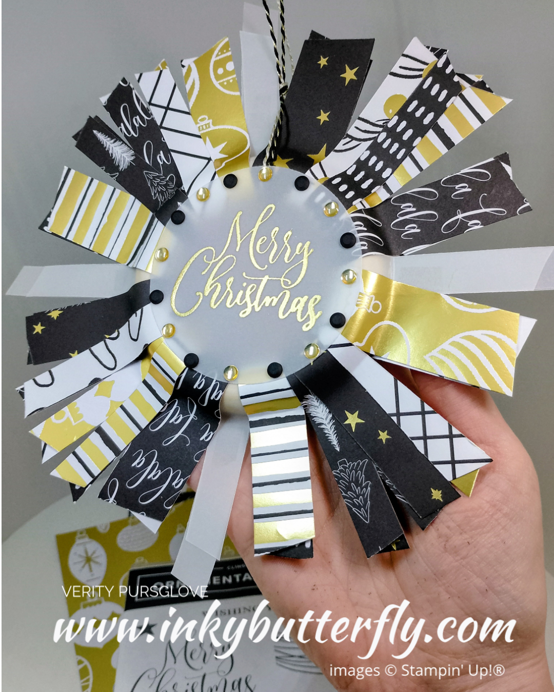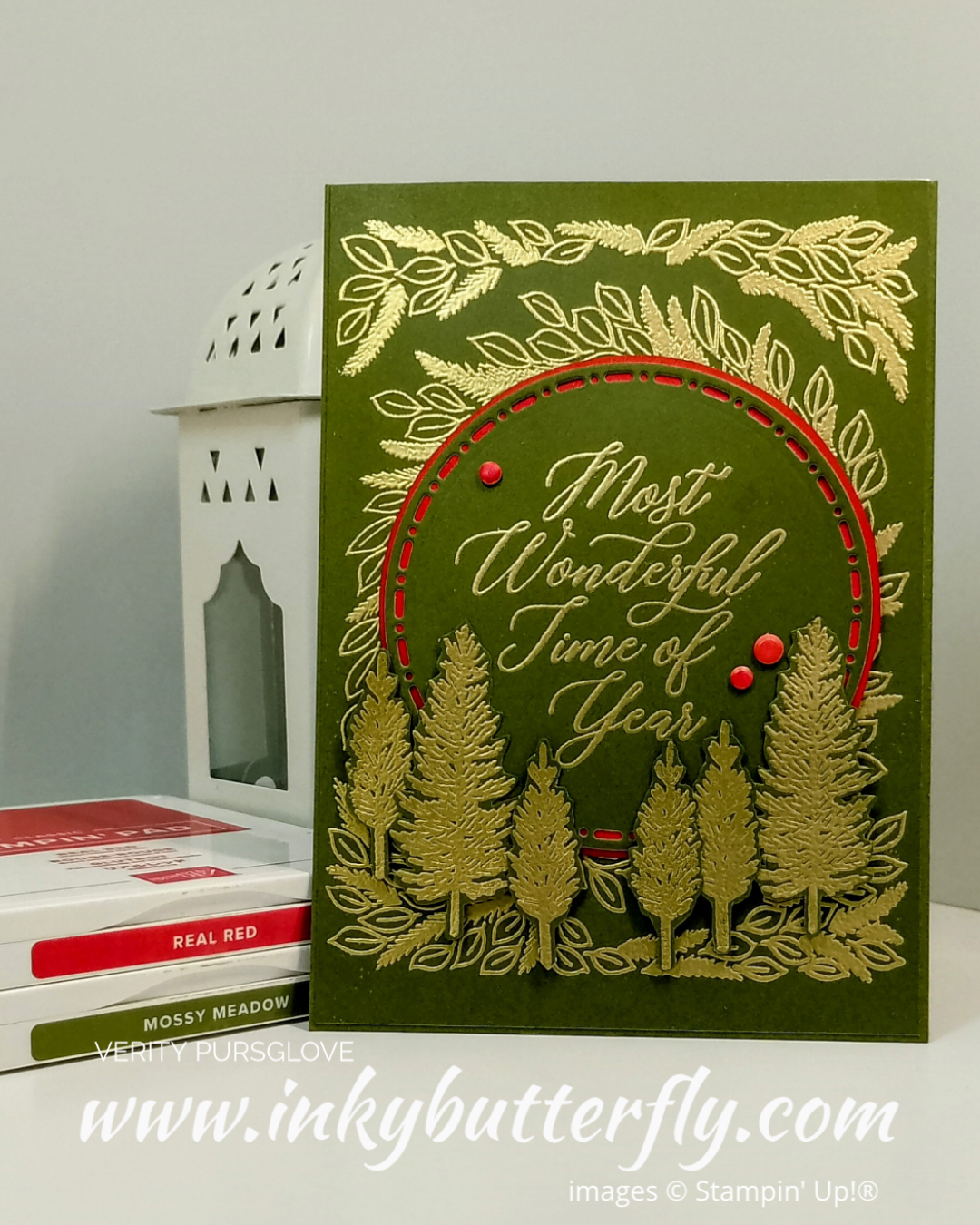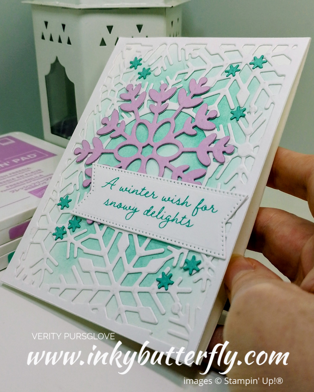The 1¾ inch punch was used to cut the sentiment and layered on silver foil.