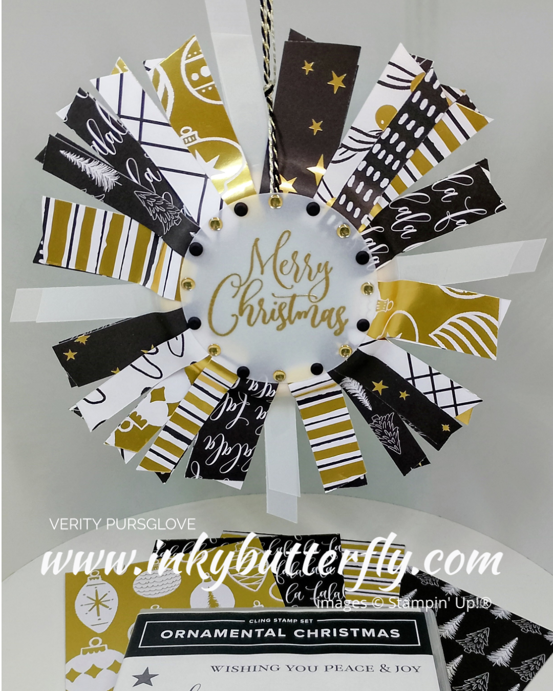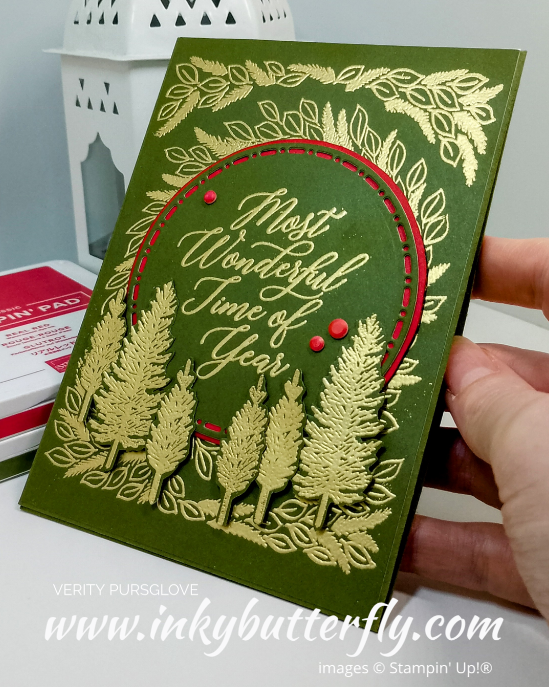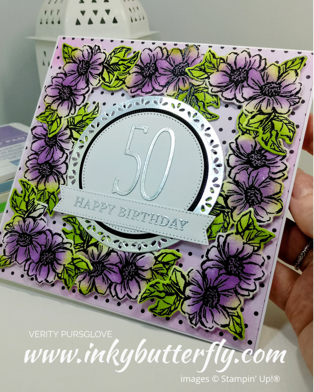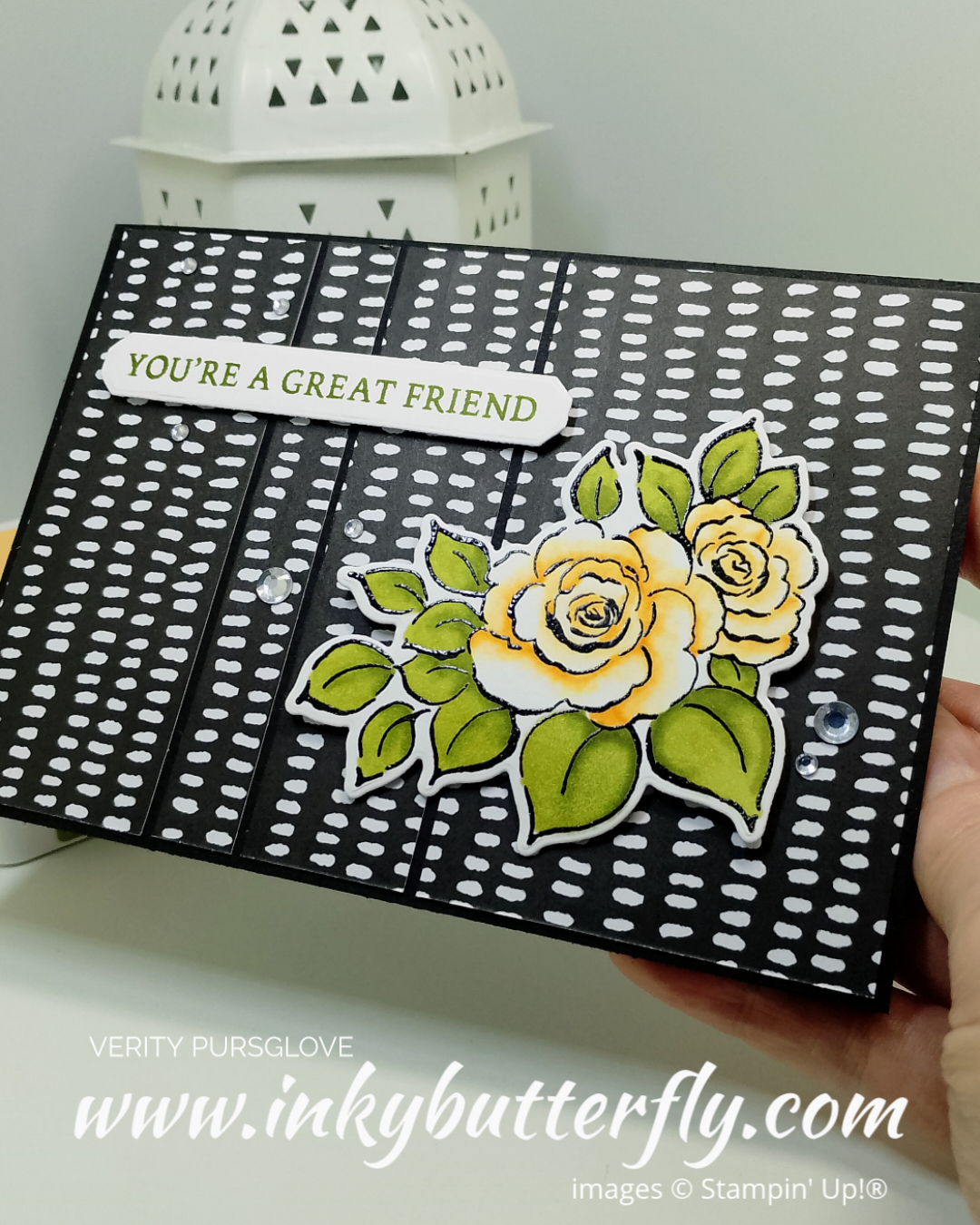 The 1¾ inch punch was used to cut the sentiment and layered on silver foil.