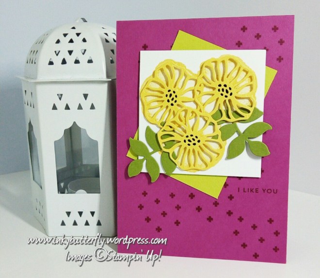 Today’s project is made with a stamp set I was lucky enough to win at the On Stage Live event that I attended in April ….. a fabulous perk of being a Stampin’ Up! demonstrator.
