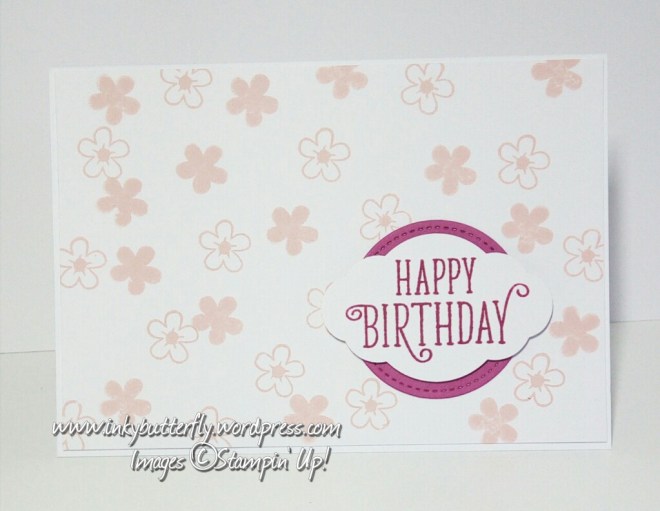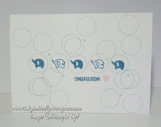 The sentiment was stamped with black ink on a 1 inch strip of Whisper White card stock. This was added to the bottom of the card with Stampin’ Dimensionals.
