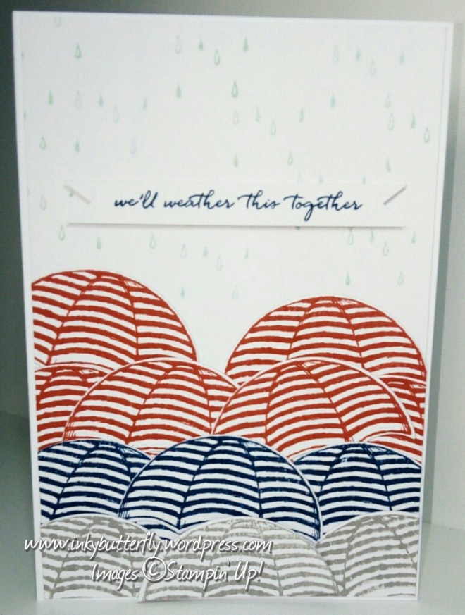 The umbrellas were stamped with Smokey Slate, Night of Navy and Watermelon Wonder then die cut with the matching framelits. These shapes could be cut out by hand very easily too.