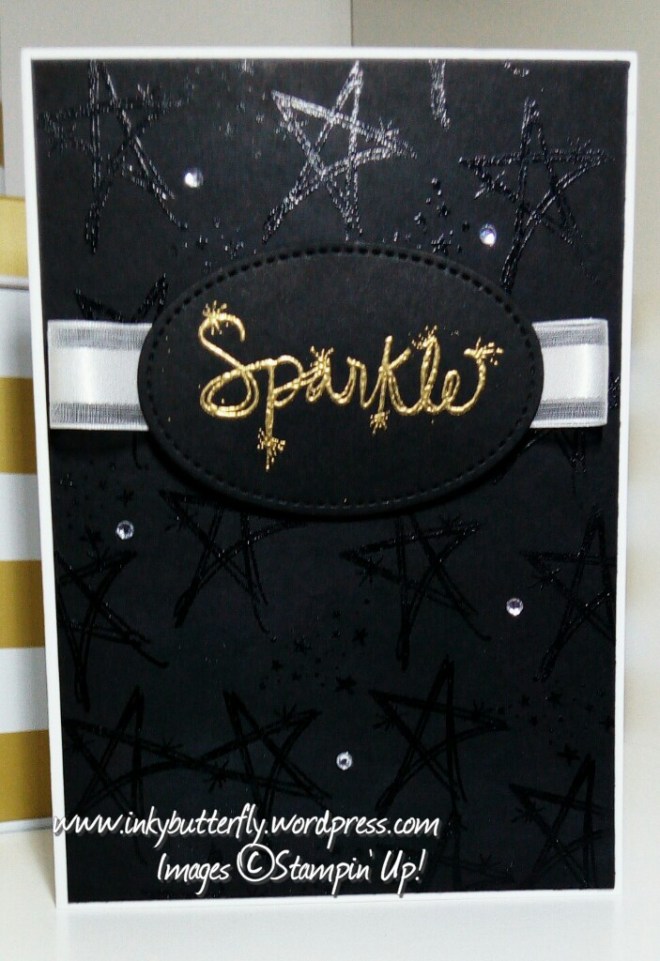 The star image was then stamped with clear versamark embossing ink. Add the embossing powder and tip off the excess. Heat the powder until it melts and turns glossy.