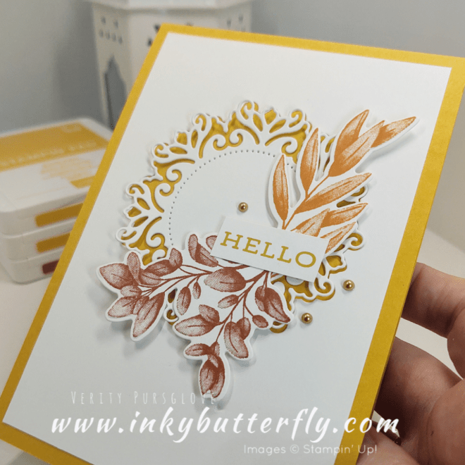 So for today’s card I’m using them all! I’ve picked out the Dragonfly Garden Stamp Set, another annual catalogue favourite!