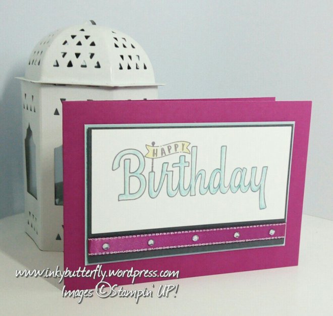 The image was stamped in memento ink and coloured with Bermuda Bay and Daffodil Delight Stampin’ Blends.