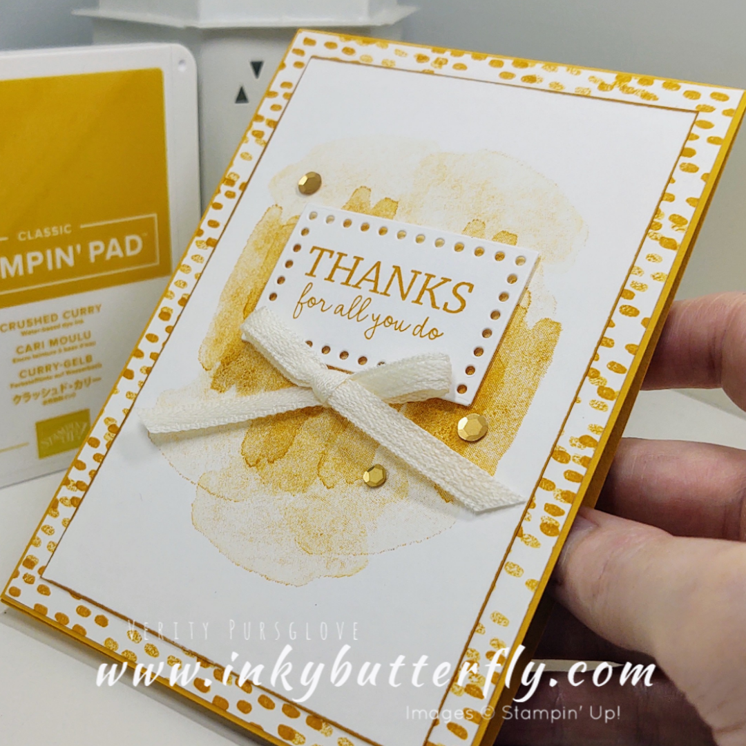 My design features the Timeless Charm stamp set and Everyday Details dies… Both are online exclusives and must-haves, in my opinion!