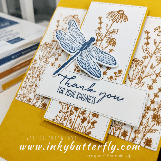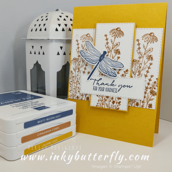 I’m using the Dragonfly Garden stamp set for my cards. This of course can be substituted for any stamps you wish to use.