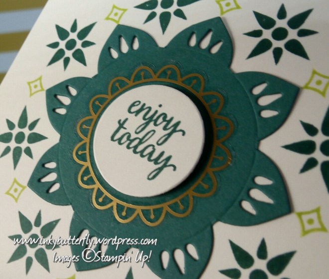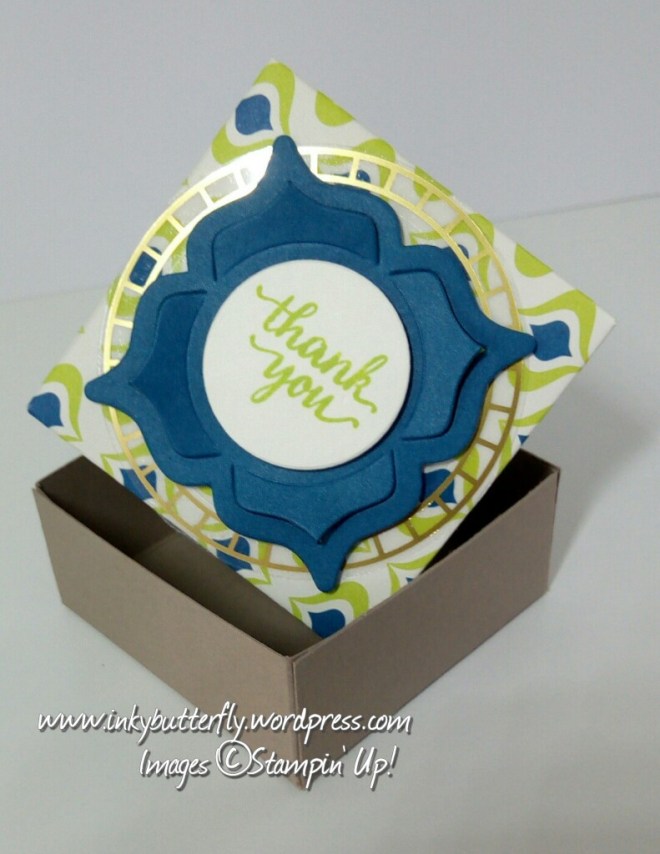 The front was decorated with more patterned paper and Eastern Medallion die cuts.