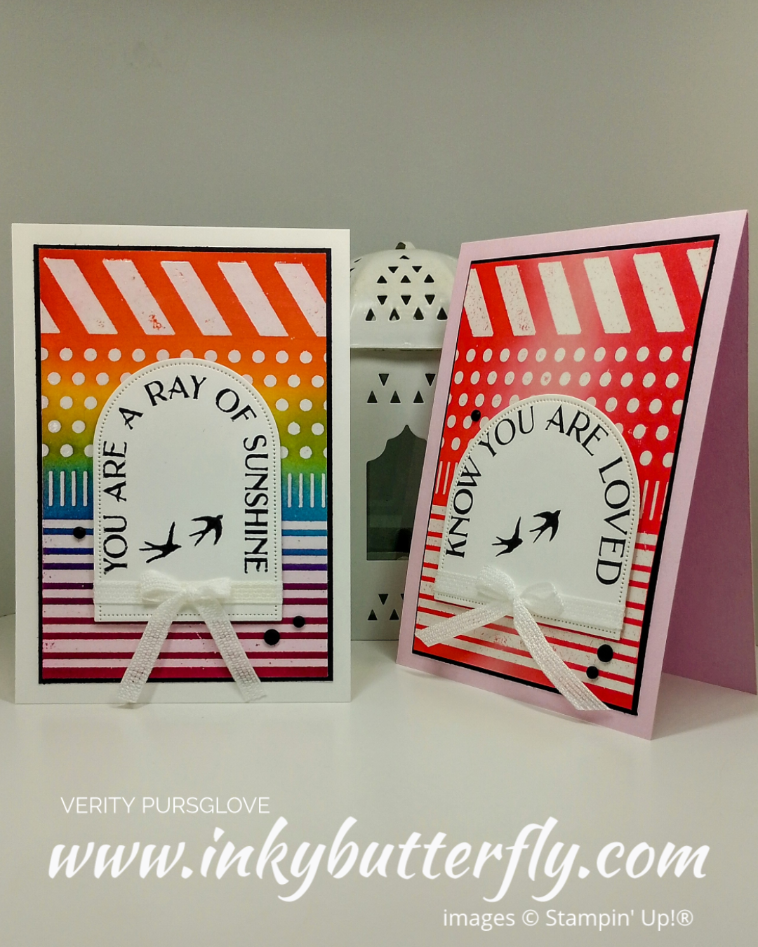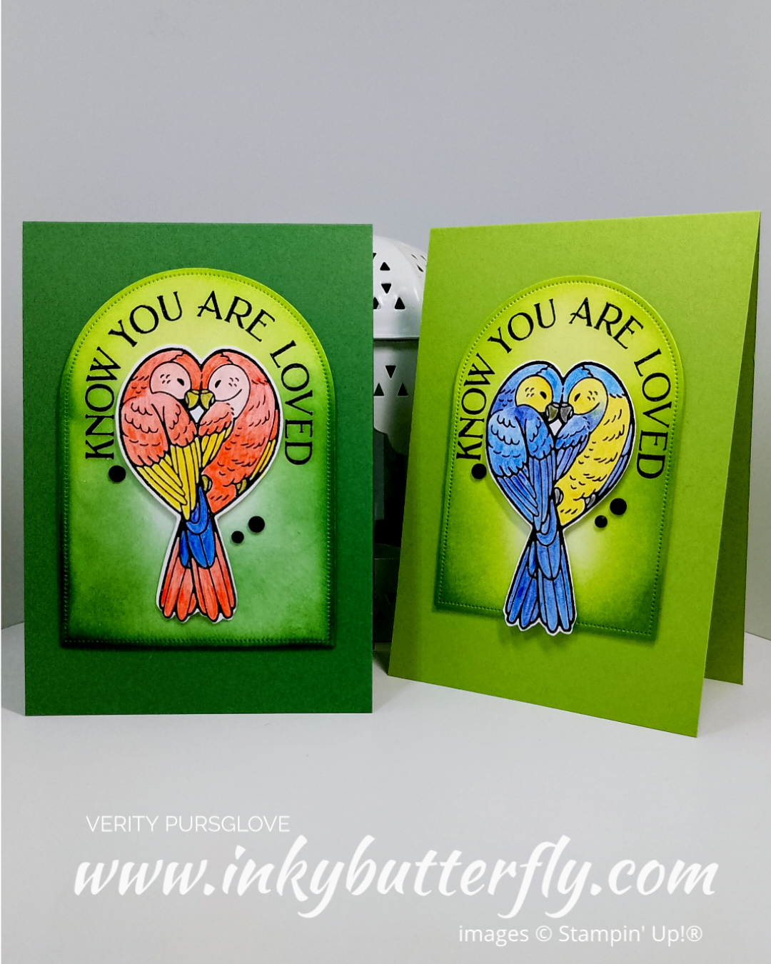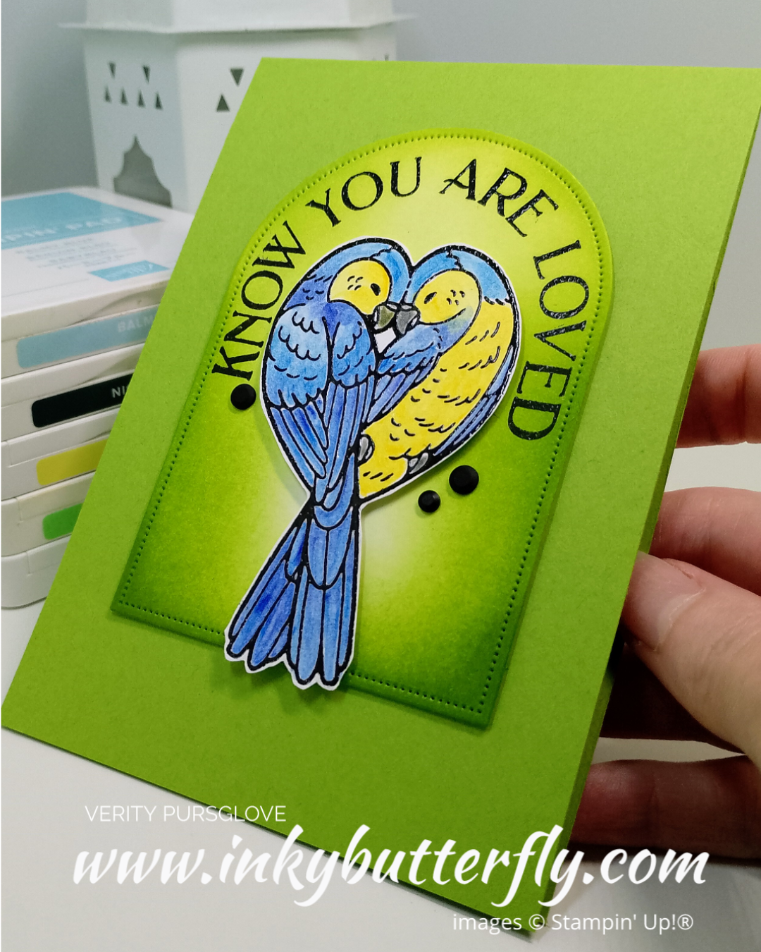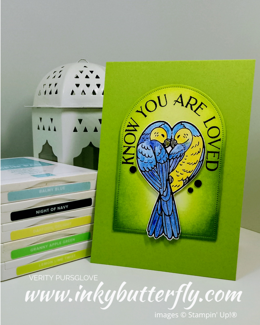 The arch die cut was ink blended with Lemon Lime Twist and Granny Apple Green and added to a coordinating card base.