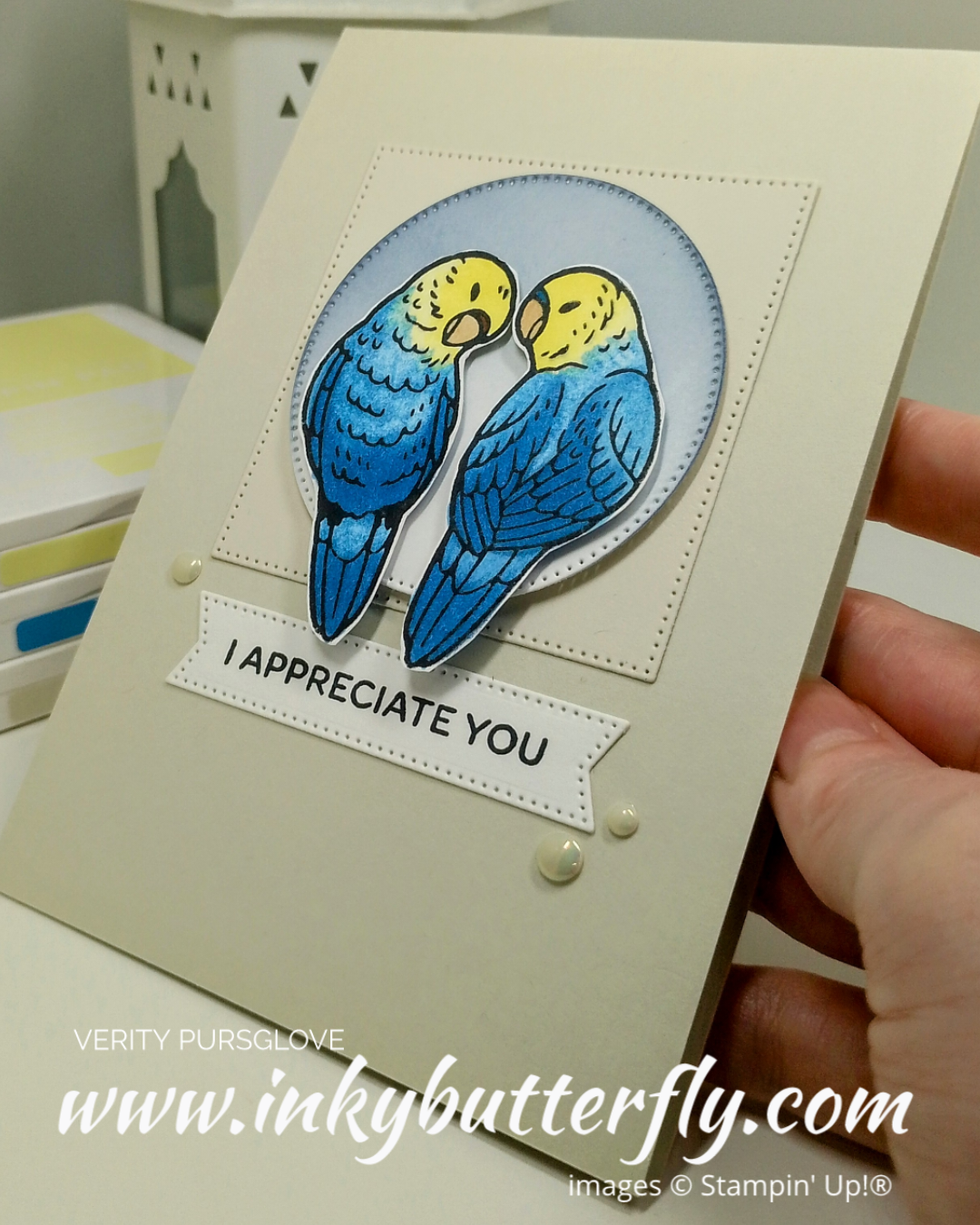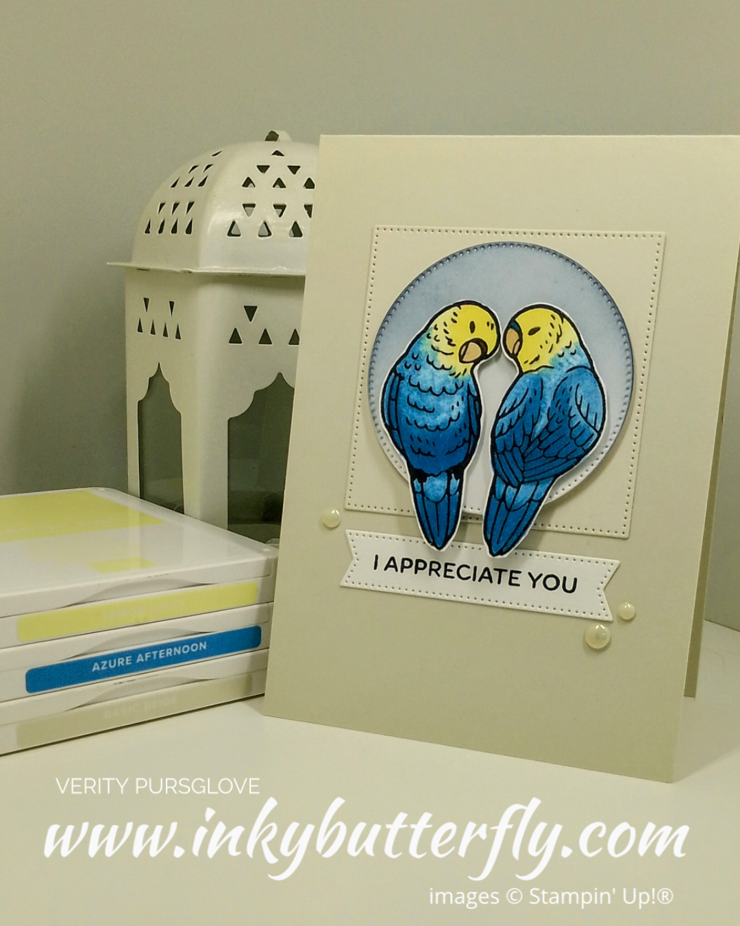 Today I am using my watercolour pencils with the Feathered Fun stamp set.