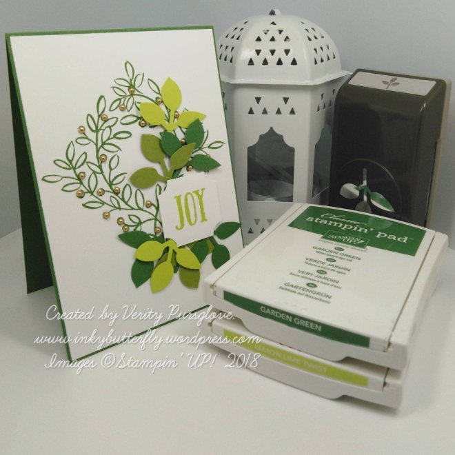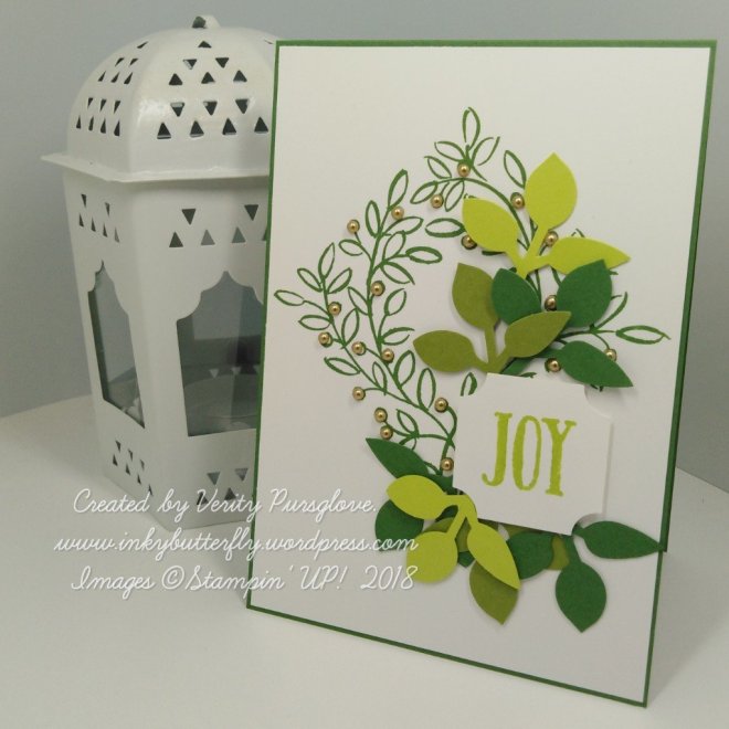 The card base was made with Garden Green card stock. Matching ink was used to stamp the Holly frame on to the background.