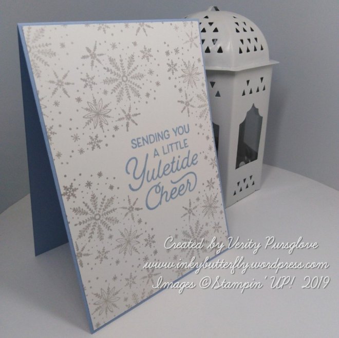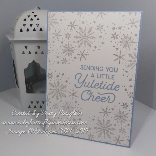 The card design is reasonably self explanatory, building the background with the images as shown in the photo. The gold snowflakes were a late addition but really help tie the layout together.