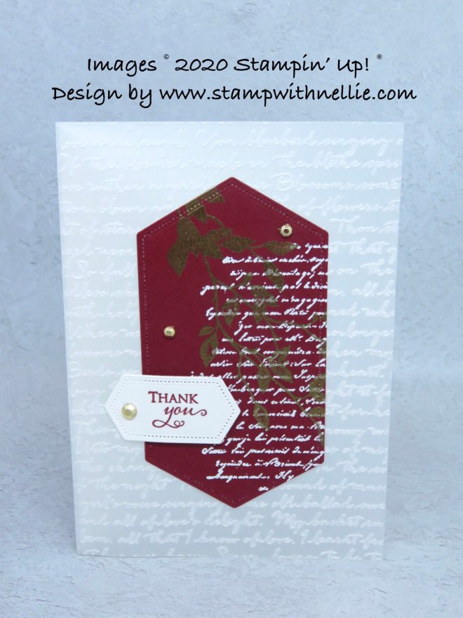 This was adhered behind the Crumb Cake apertures, then onto a piece of Real Red cardstock before adding to a Crumb Cake card base.