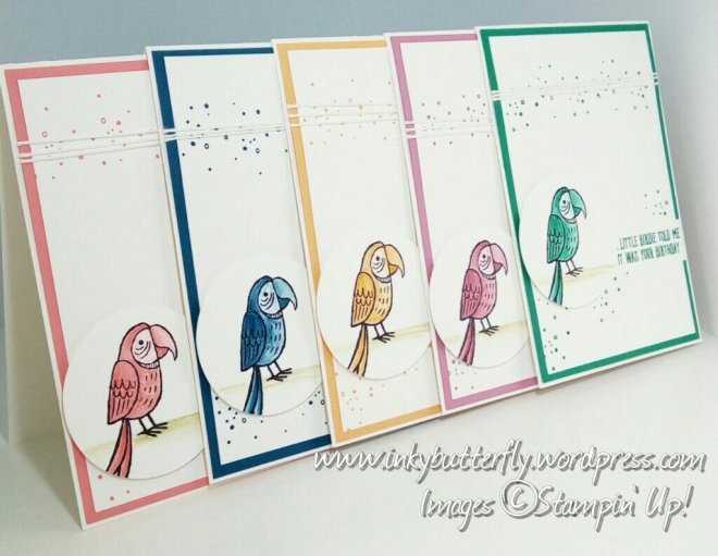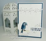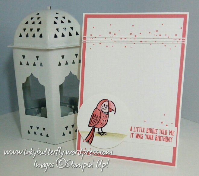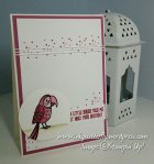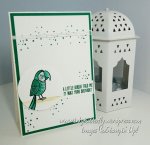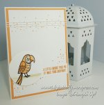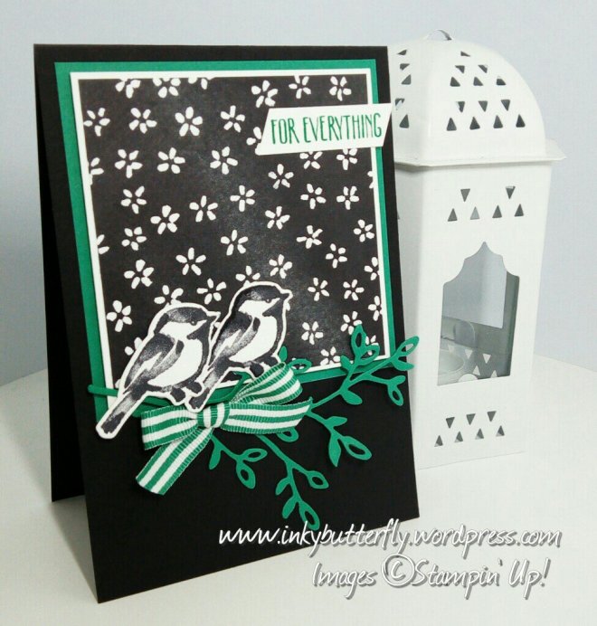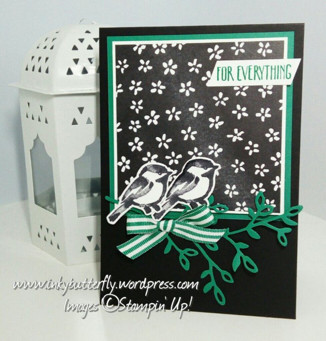 The leaf sprig was die cut from Emerald Envy card stock. I also stamped two of the little birds and die cut these too.