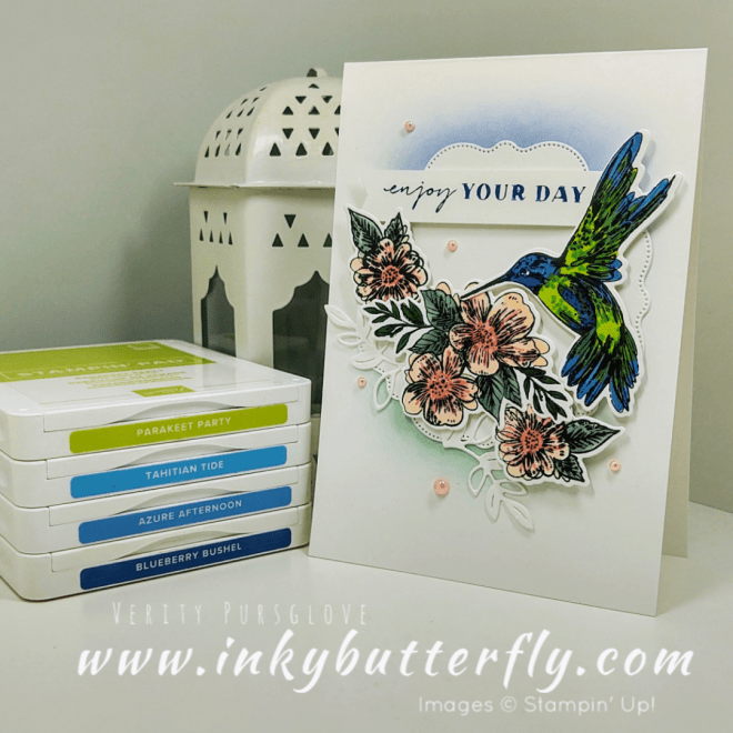 I’ve worked with four shades today, this sample uses the warmer Gray Granite and Pebbled Path. You can see the difference in the look with cool shades Basic Grey and Smoky Slate below.