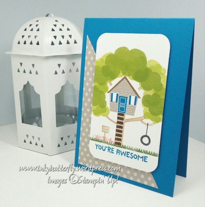 Highland Heather, Granny Apple Green, Gray Granite and Balmy Blue ink built the background. Some speckles of Soft Sea Foam filled in the white spaces and added some texture.