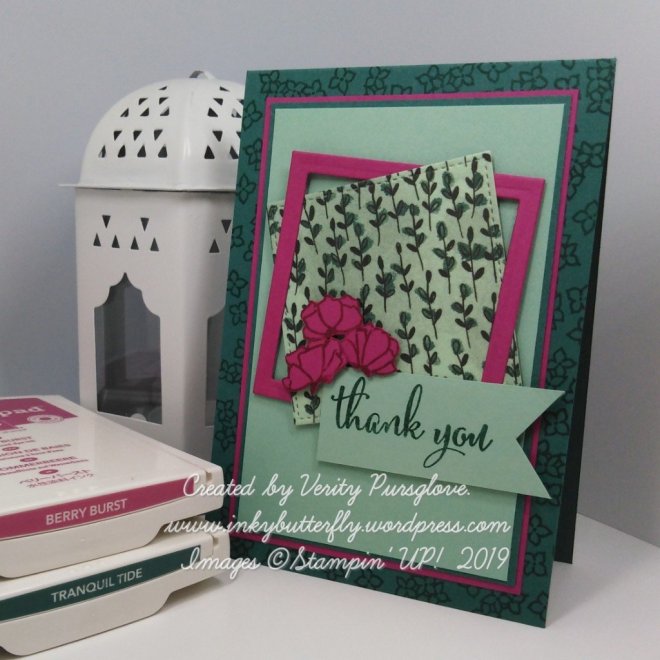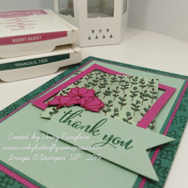 Layers of Berry Burst, Tranquil Tide and Mint Macaron card stocks were added to the front.
