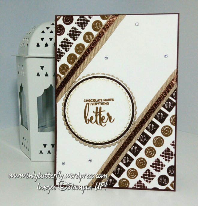 On the white piece, I stamped the greeting with clear versamark ink and heat embossed with silver powder. For extra emphasis, I also stamped the heart outline from the More Than Chocolate set.