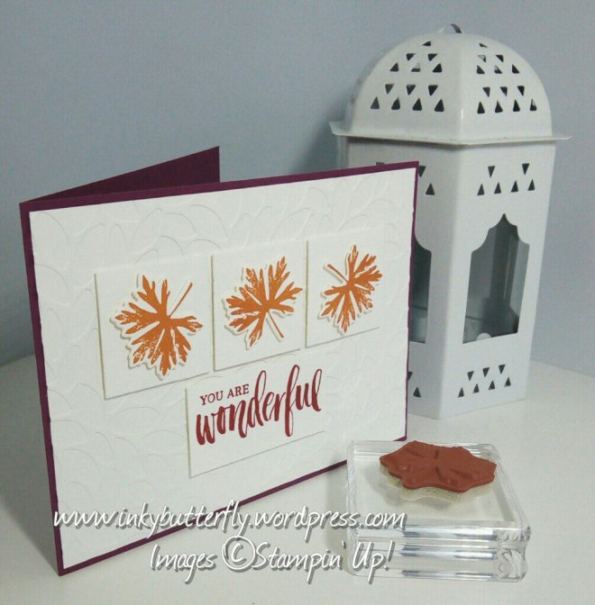 The stamp was picked up on the door of the Stamparatus, inked up with Lovely Lipstick ink and stamped on to the card.