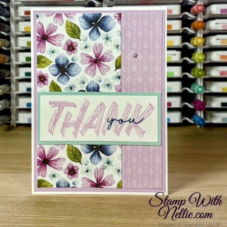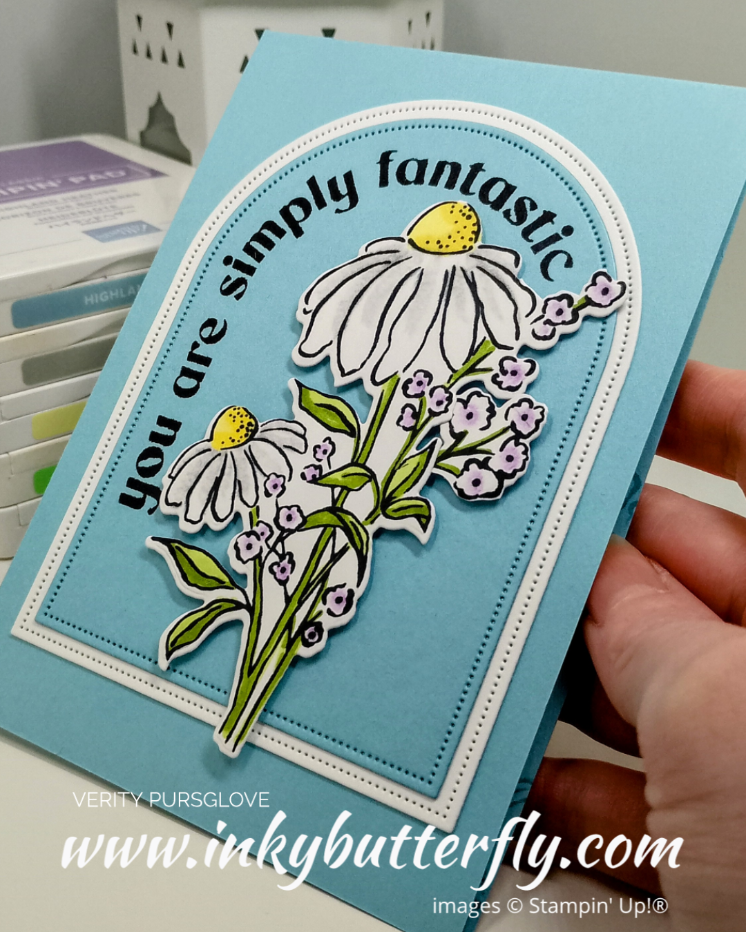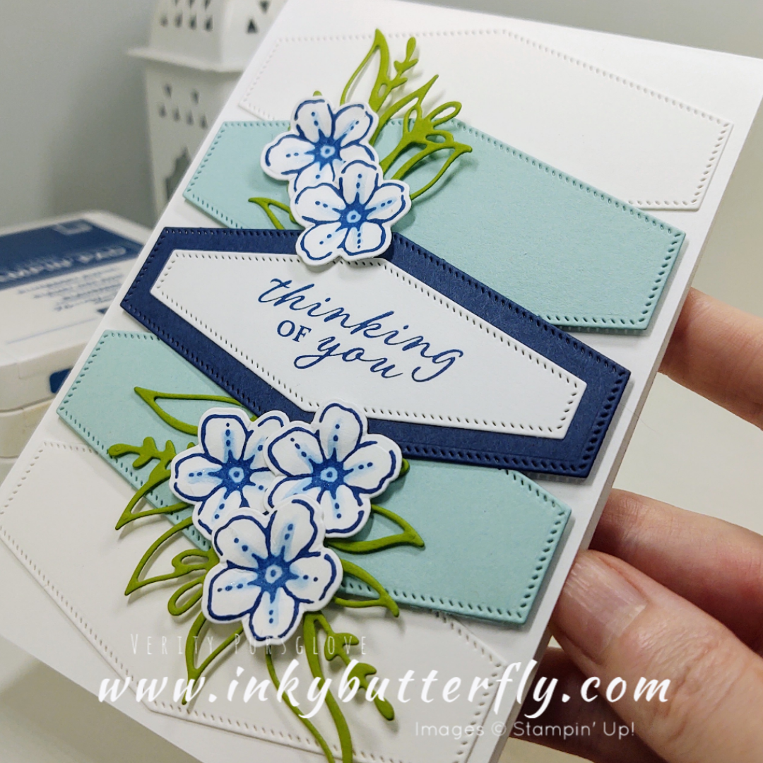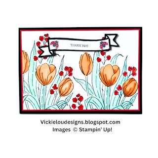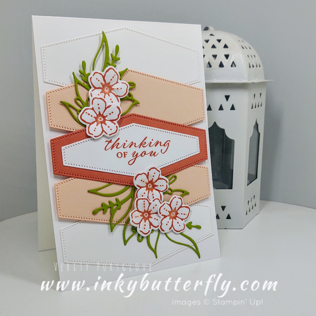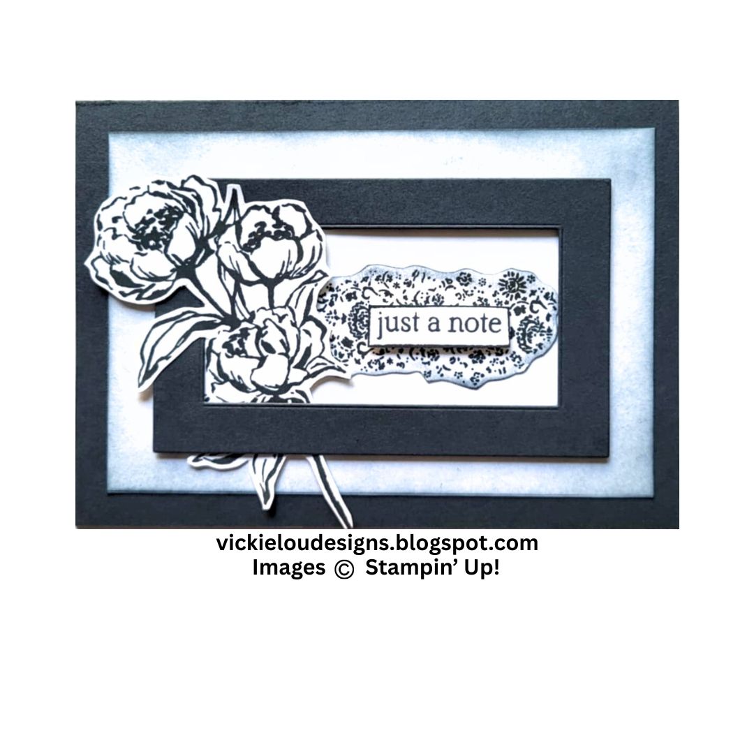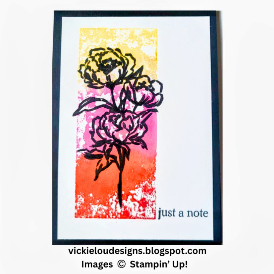 Vickie has coloured this gorgeous floral image with Stampin’ Blends layering it with coordinating cardstock ….