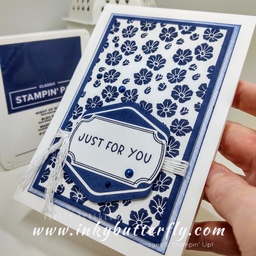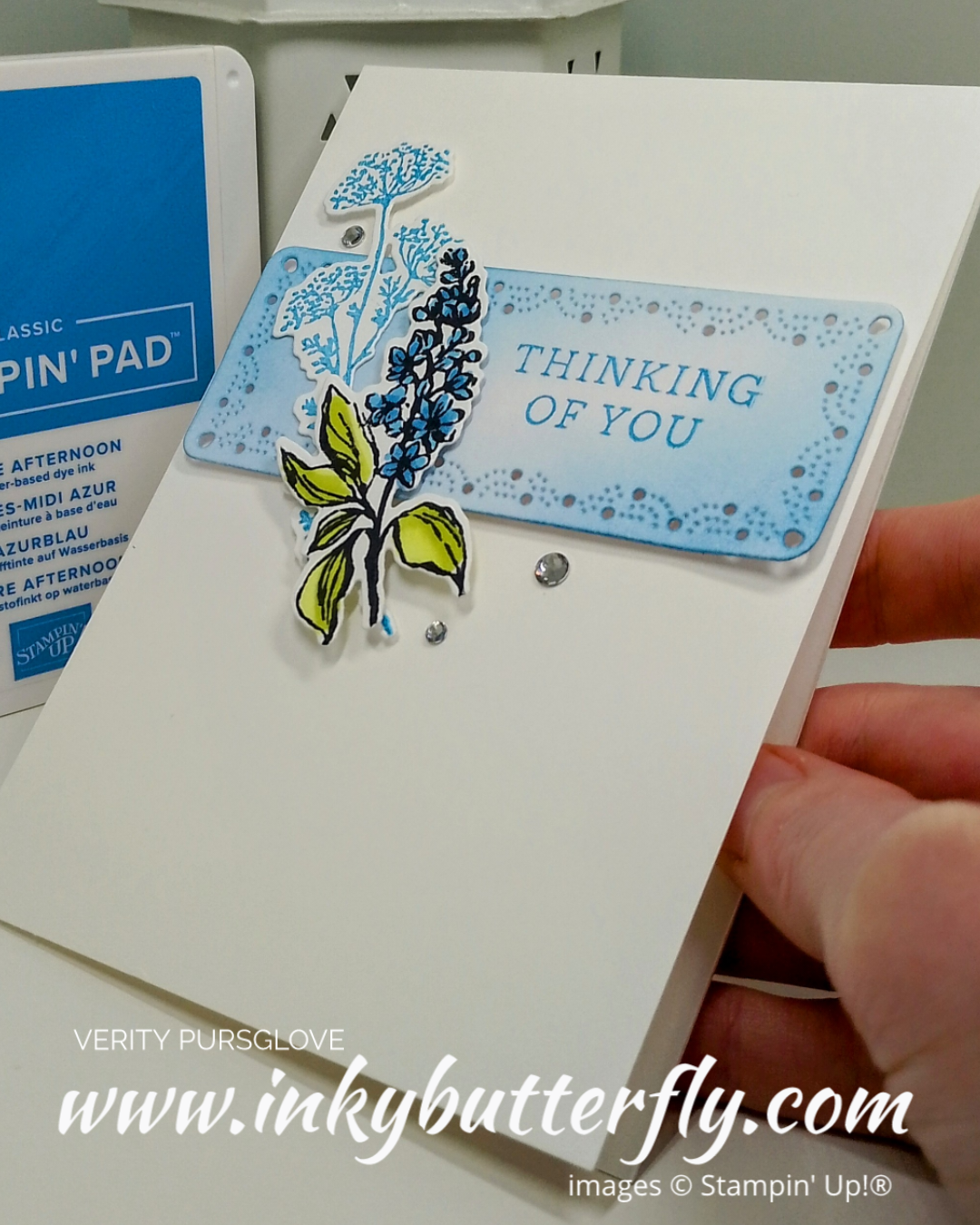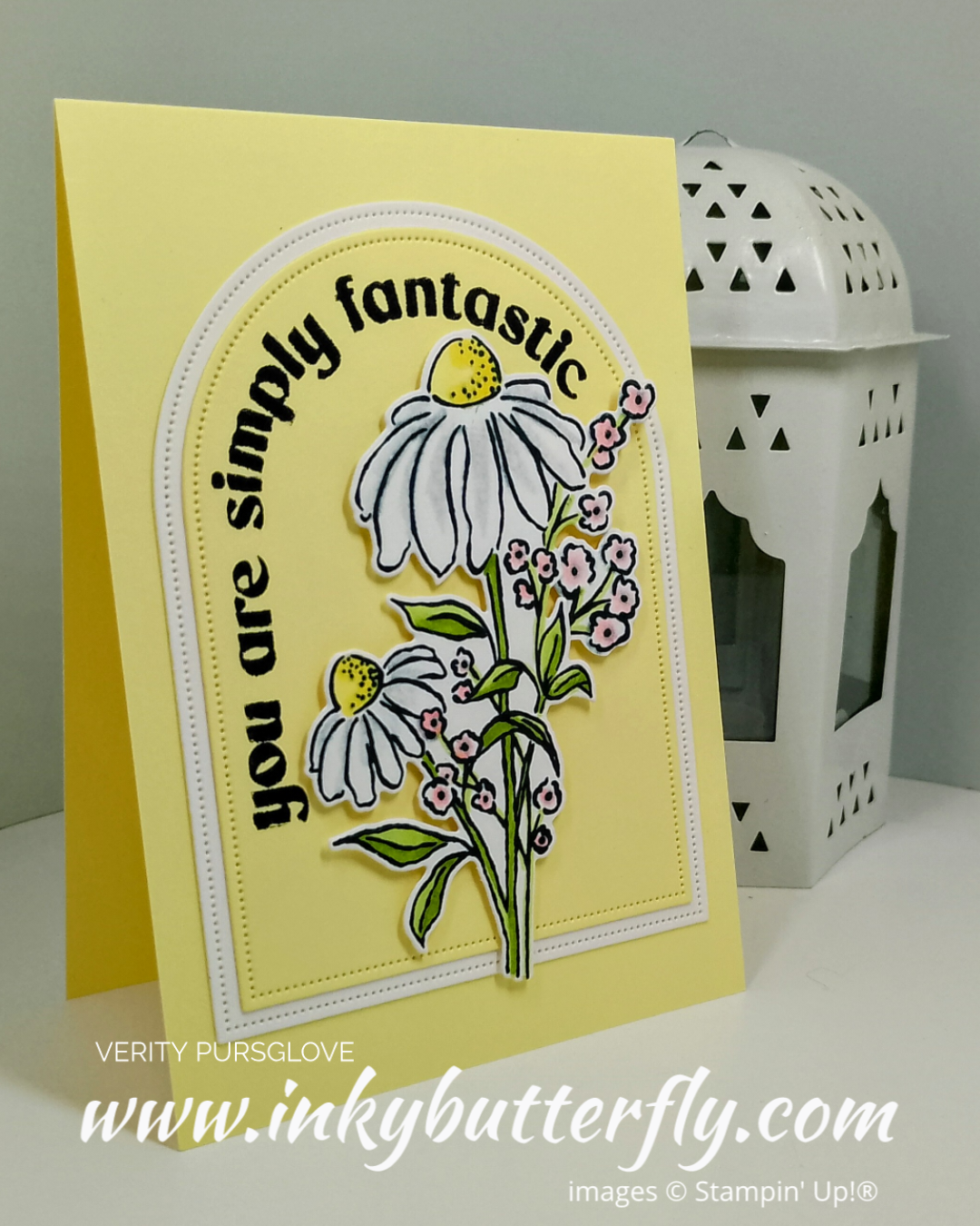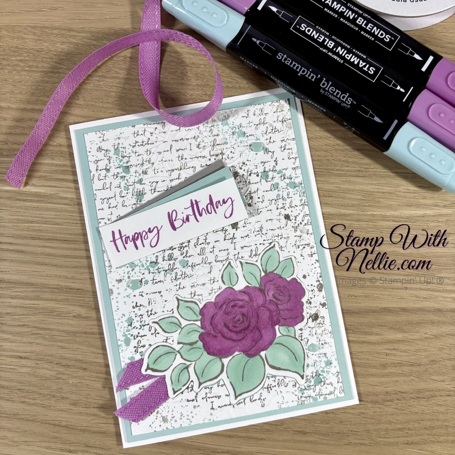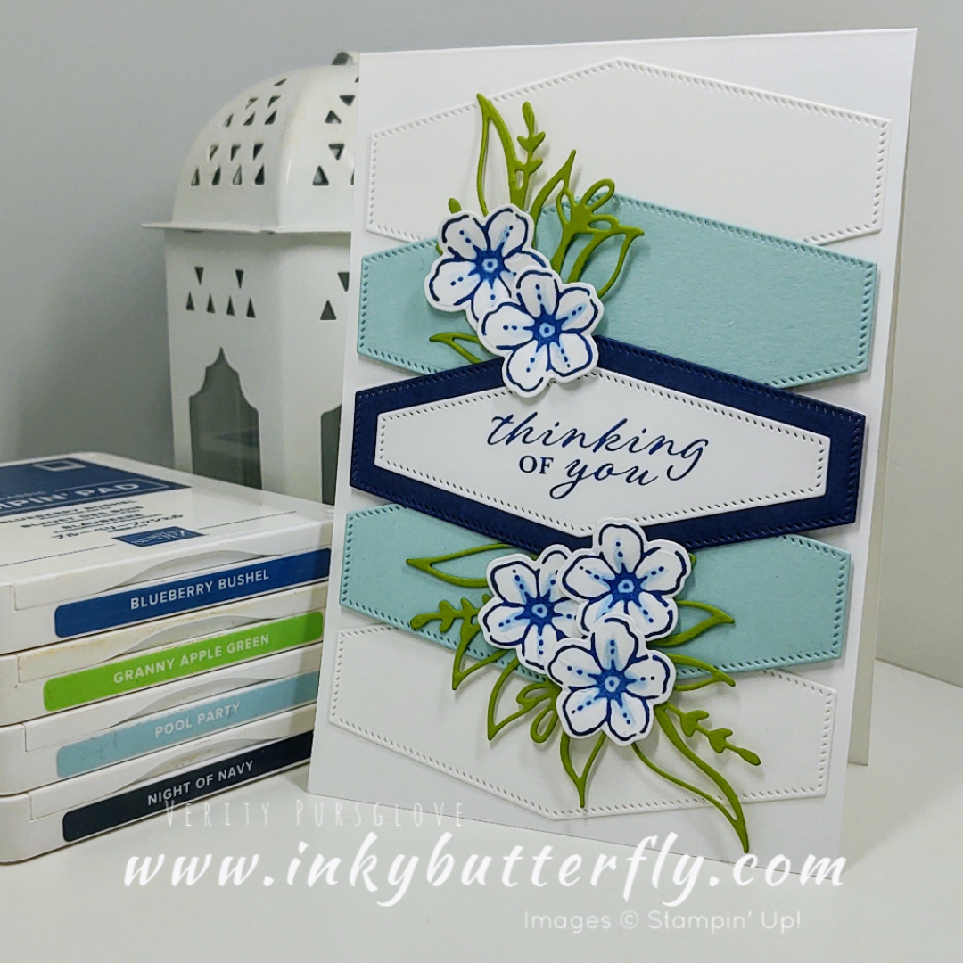 Vickie has coloured this gorgeous floral image with Stampin’ Blends layering it with coordinating cardstock ….