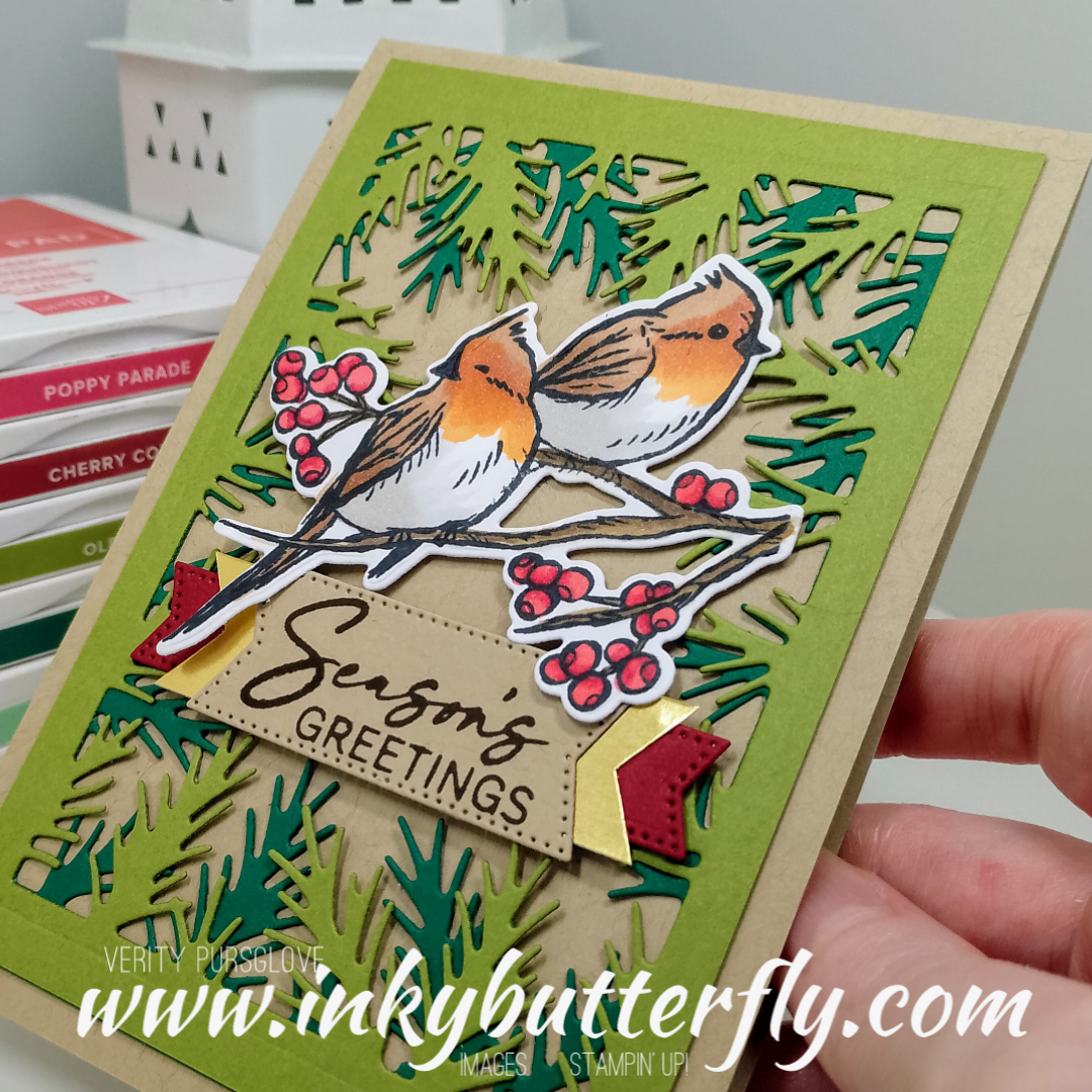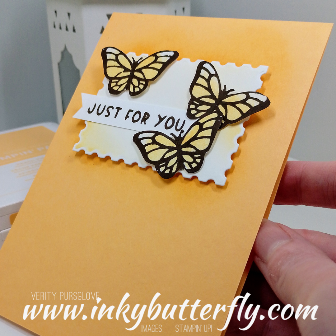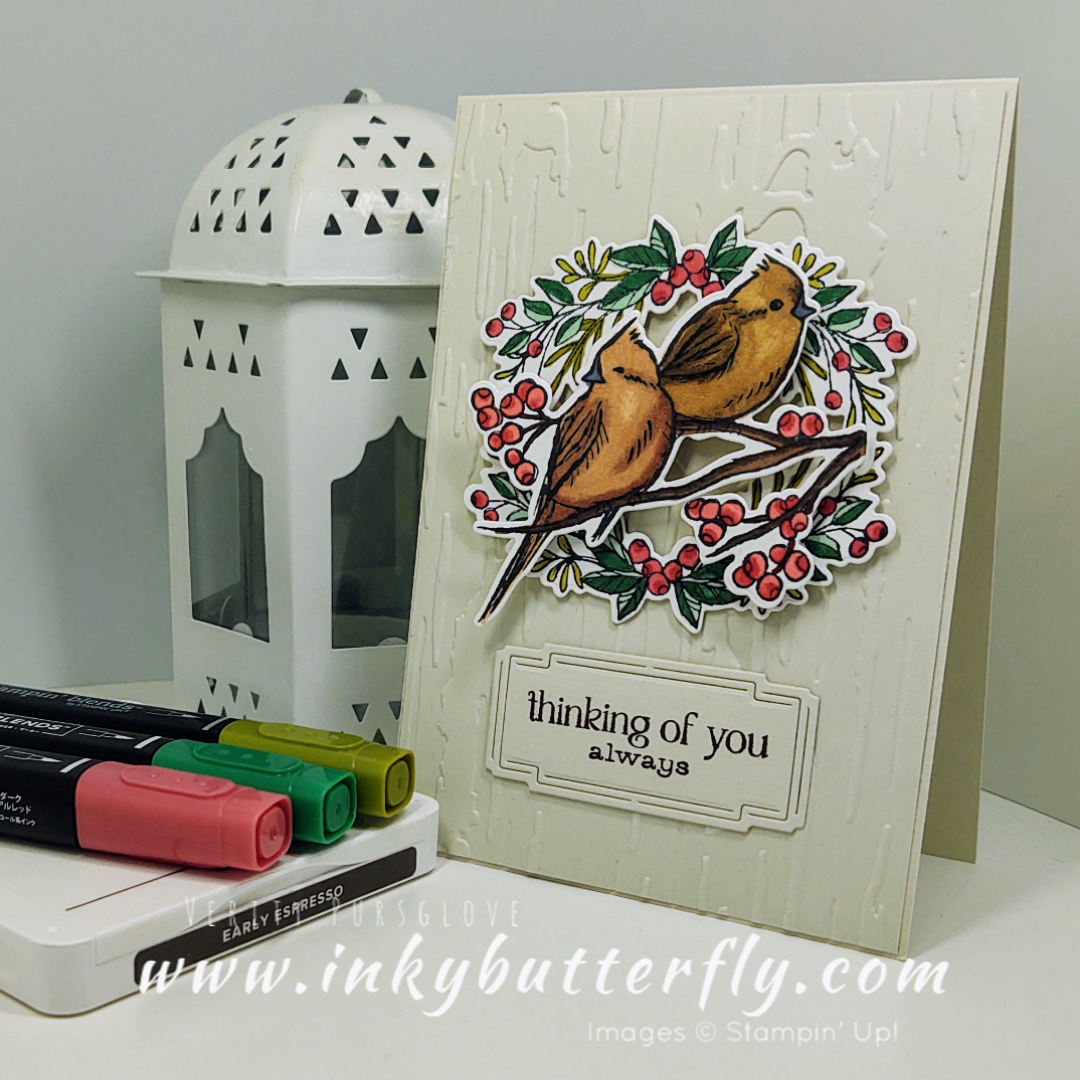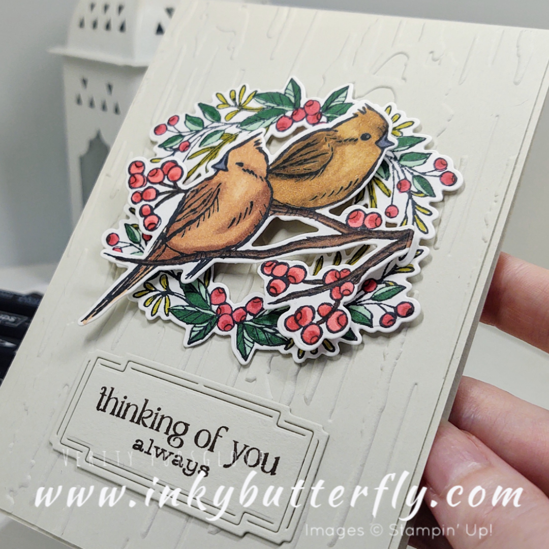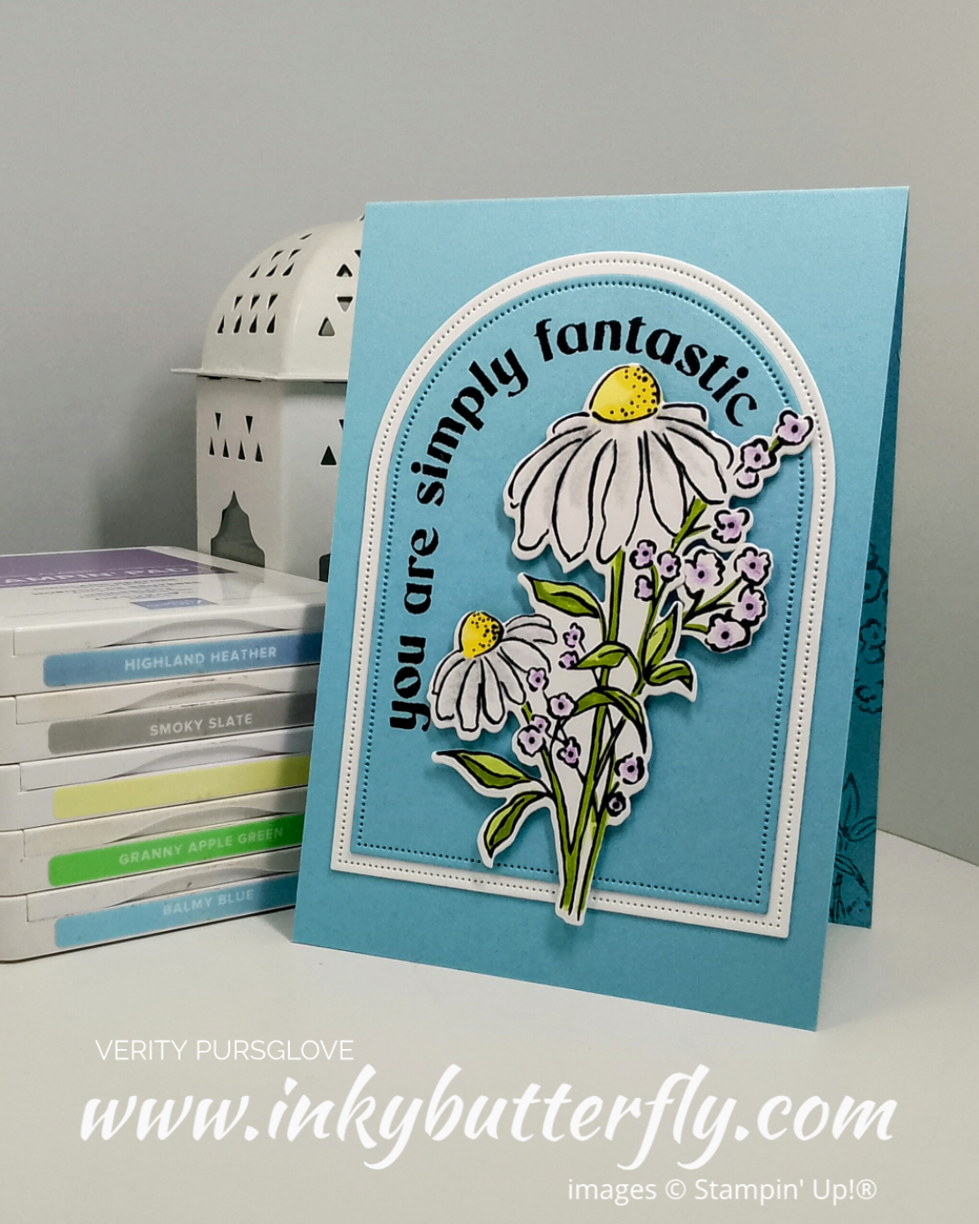 Vickie has coloured this gorgeous floral image with Stampin’ Blends layering it with coordinating cardstock ….